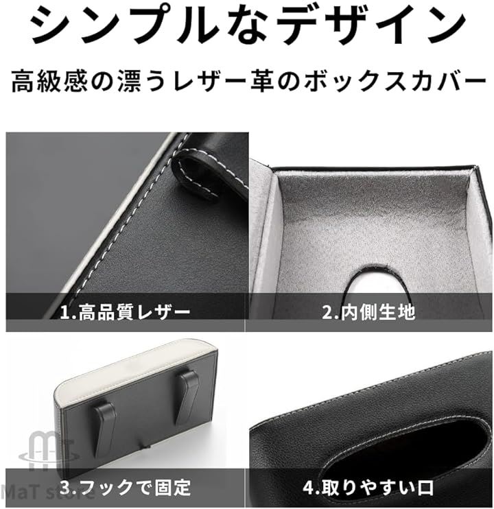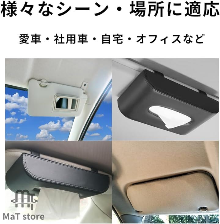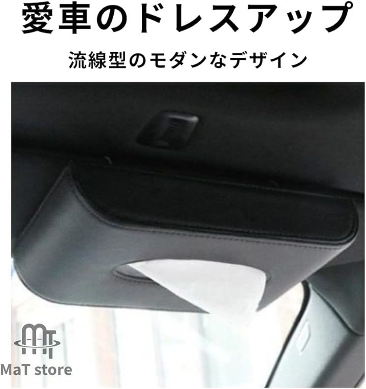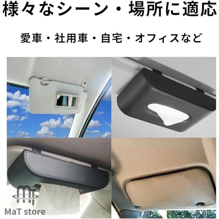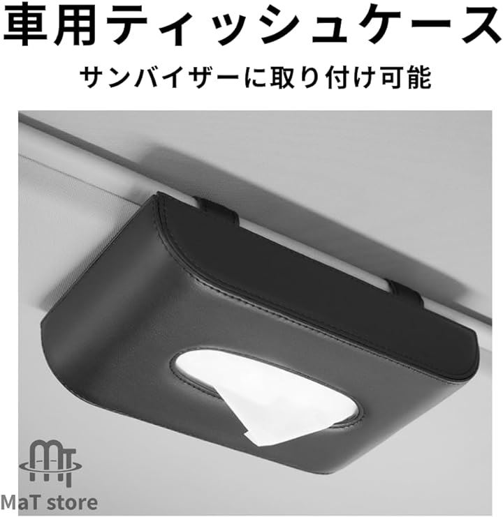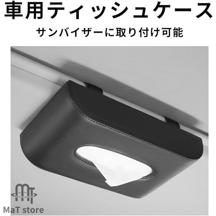 車用 ティッシュケース サンバイザー PUレザー カー用品 カバー ブラック