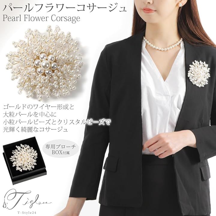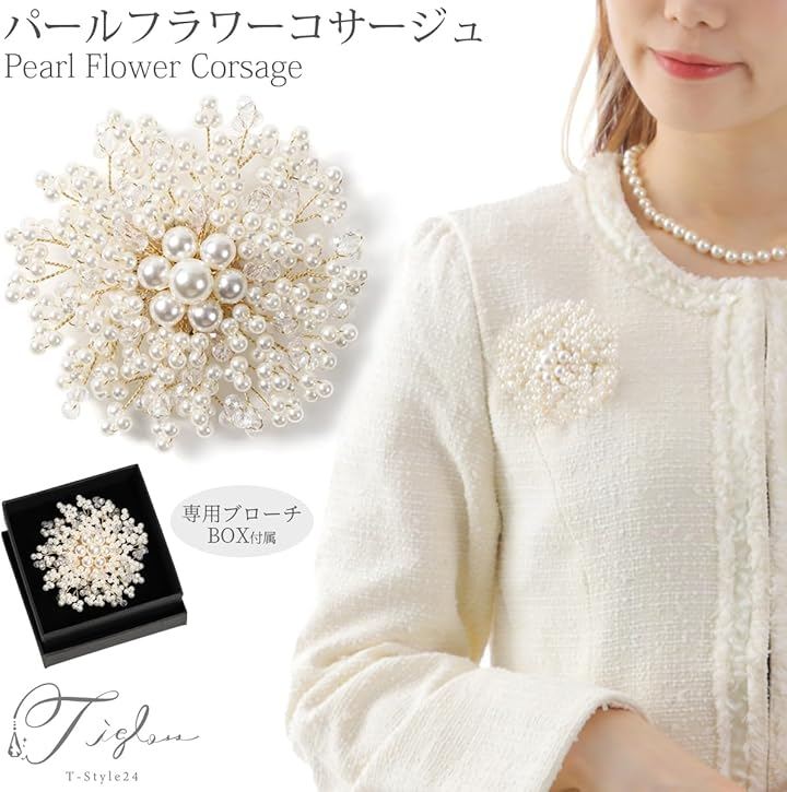 ティグロス ブローチ コサージュ パール フラワー 花 飾り セレモニー フォーマル ジャケット スーツ ギフト 贈り物 結婚式 お呼ばれ ドレス パーティー ピン クリップ おしゃれ りぼん 専用BOX付