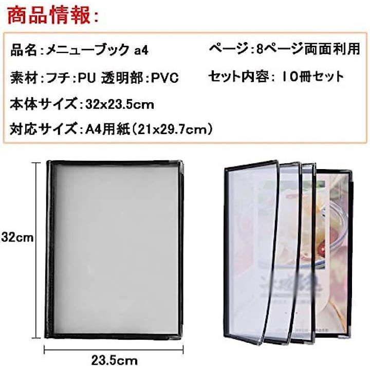 メニューブック a4 10冊セット メニュー表 メニューファイル 8ページ menu book A4サイズ対応 透明