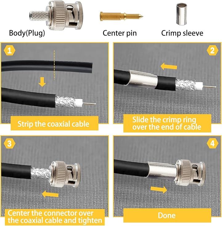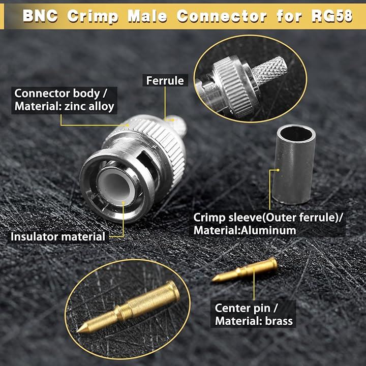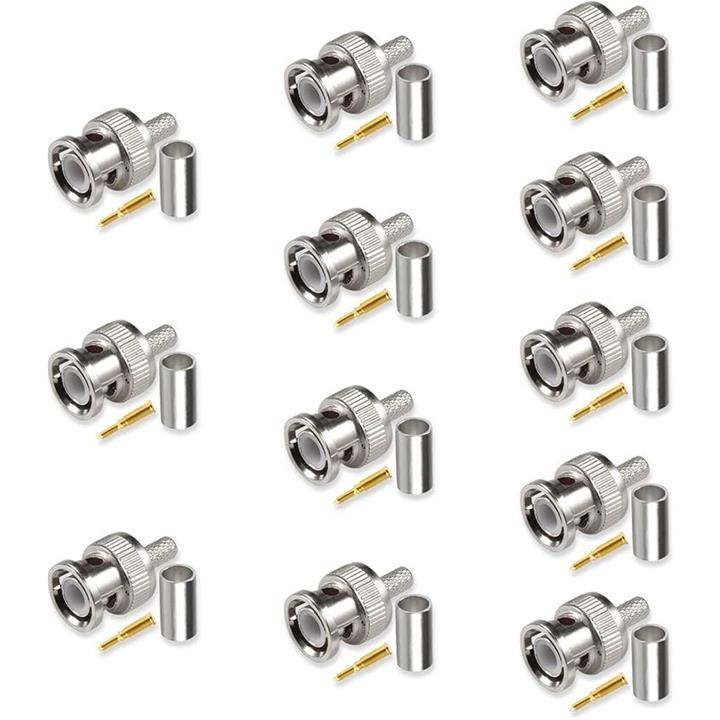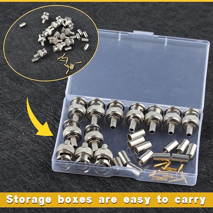 BNCオスコネクタ 圧着タイプ RG58 低損失 ケーブル用 自作 12本入り RG58圧着オスコネクタ オスプラグ圧着 コネクタRG58用 同軸ケーブル BNC圧着コネクタ 圧着アダプタ BNCケーブル作成用 BNCタイプはんだコンバータ 収納ボックス付き