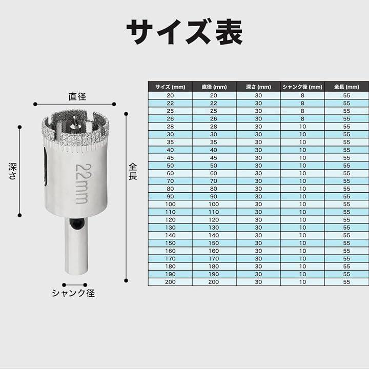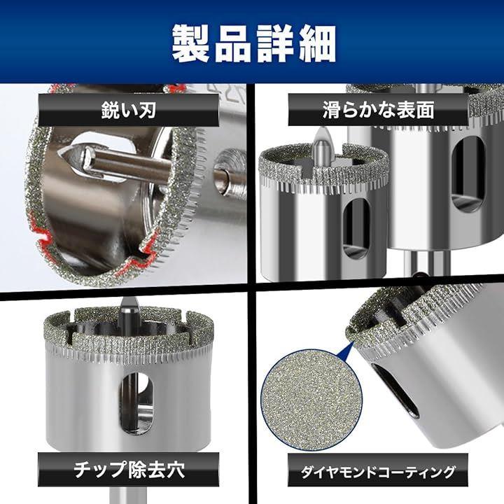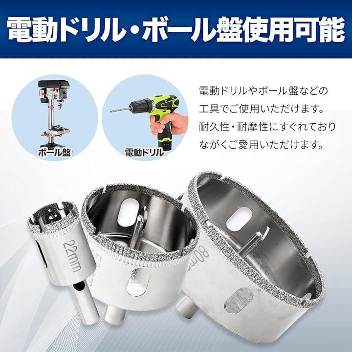 電気ドリル、充電式ドリルドライバー 、ボール盤にとりつけて、ガラス、タイルはもちろん、大理石、花崗岩などの穴開けにも対応可能。