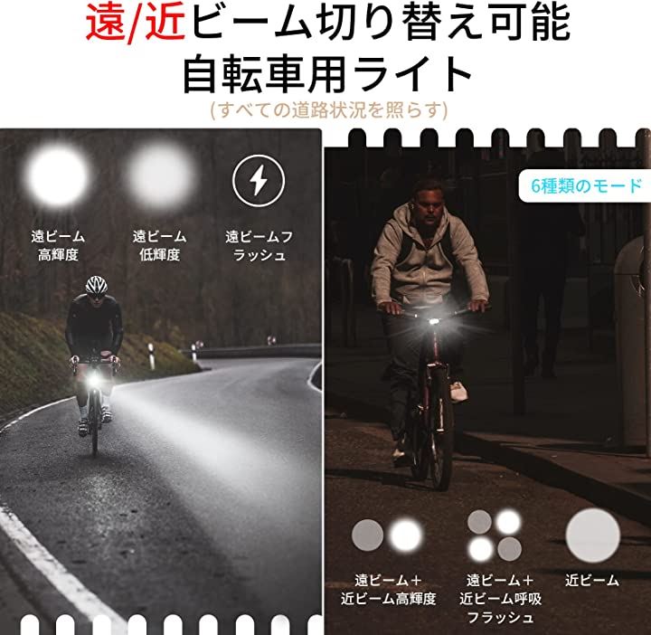 自転車 ライト テールライト アルミニウム合金製 耐久性 6つの照明モード 遠近ビーム切り替え |