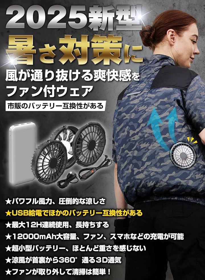 ファン付きベスト 半袖 バッテリー付属 USB給電式 3段階調節 強力風量 ファン付き作業着 軽量 薄型 涼感 通気 熱中症対策 男女兼用 汗臭を抑える 丸洗い