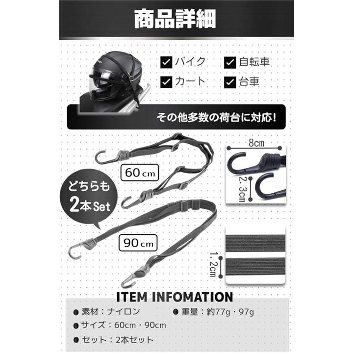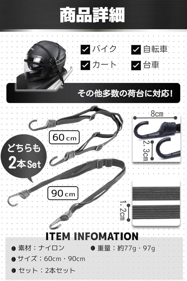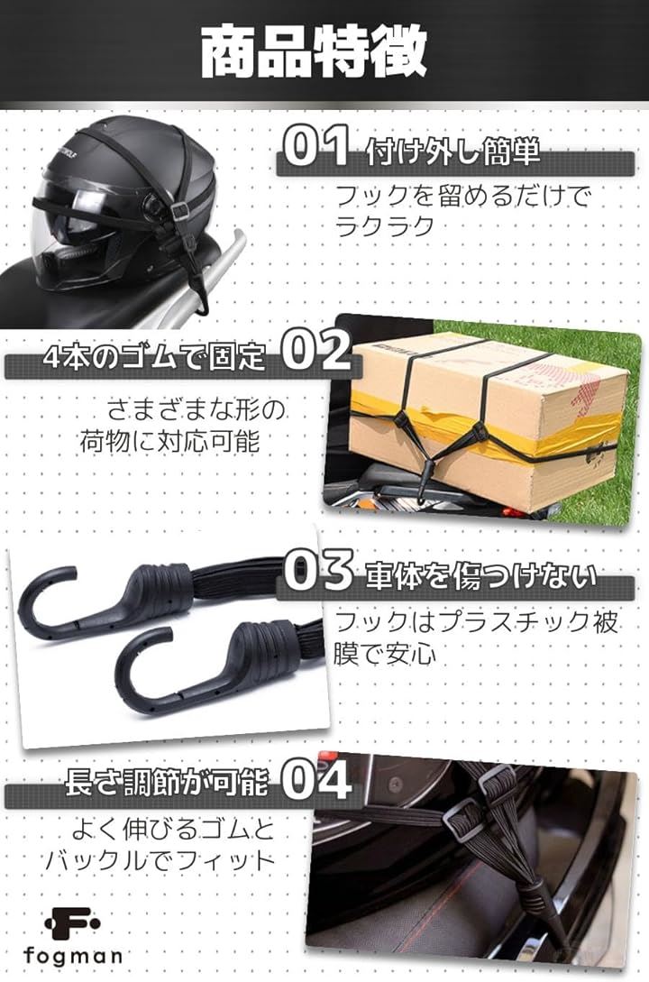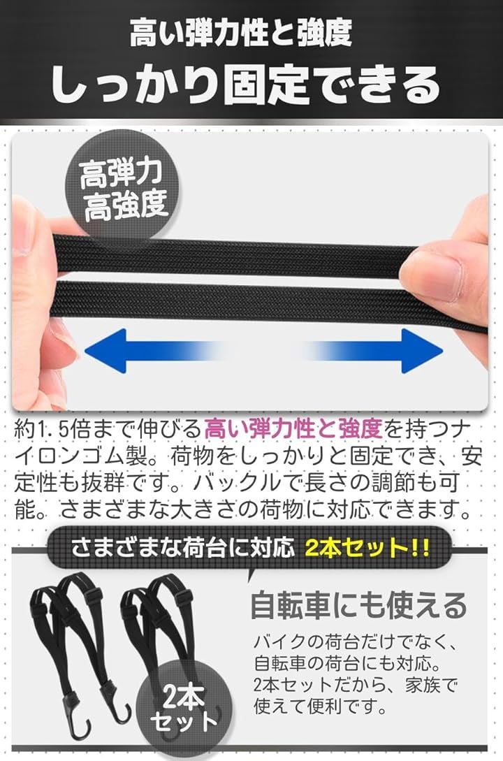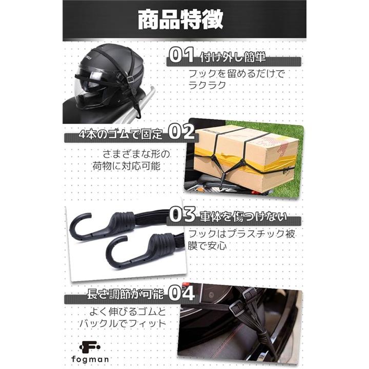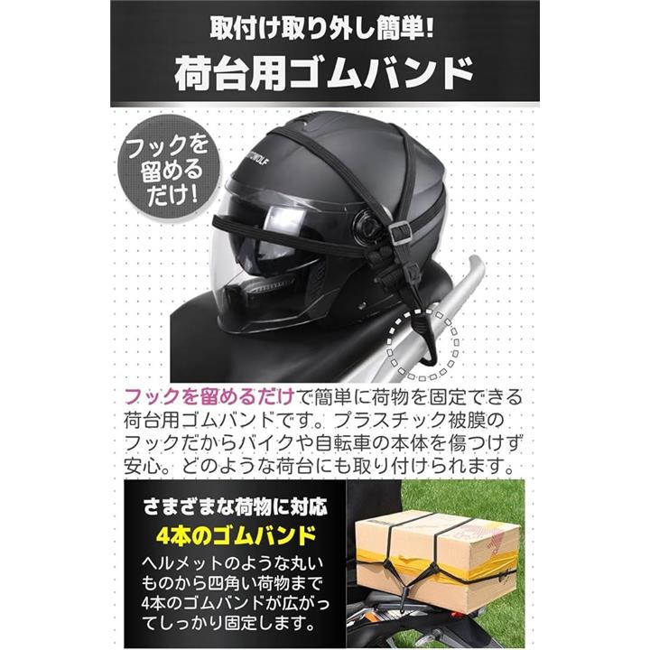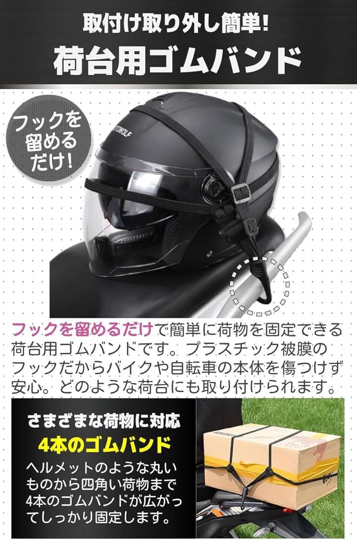 荷台用 ゴムひも 四つ又タイプ 固定簡単 固定楽々 ヘルメット 2本セット