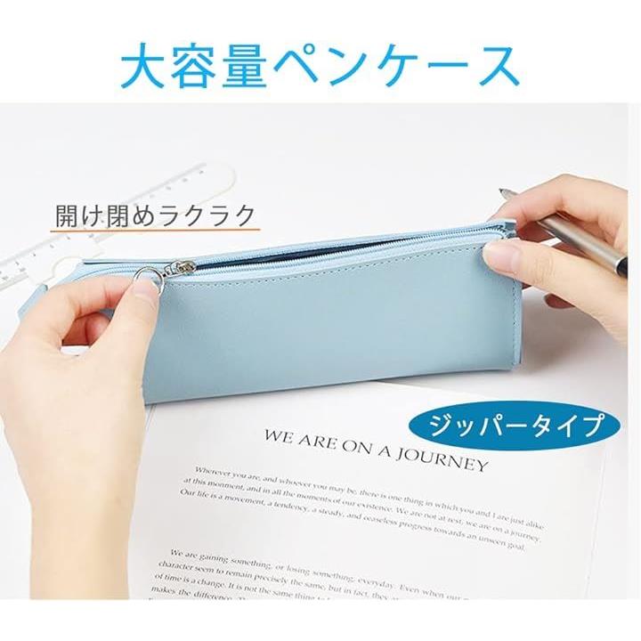 ペンケース シンプル 筆箱 おしゃれ かわいい 大人女子 大容量 ペンポーチ ブルー