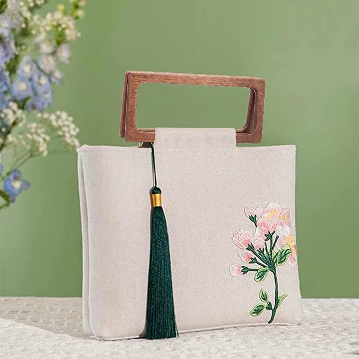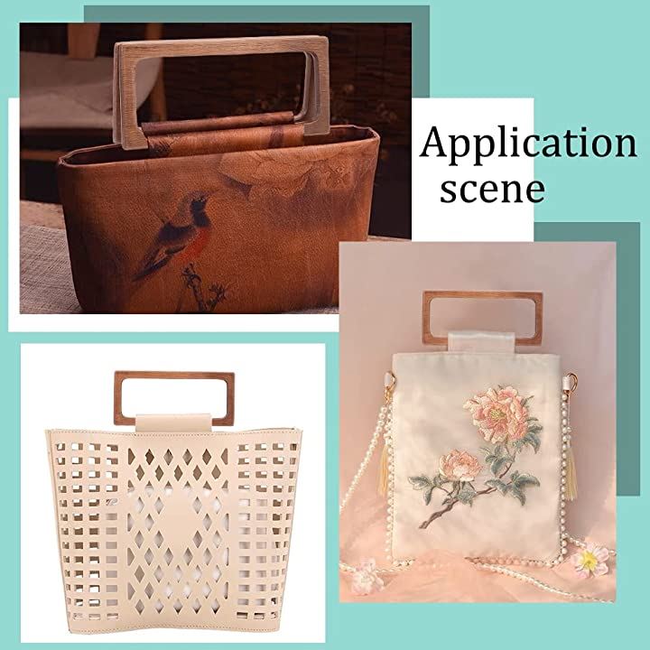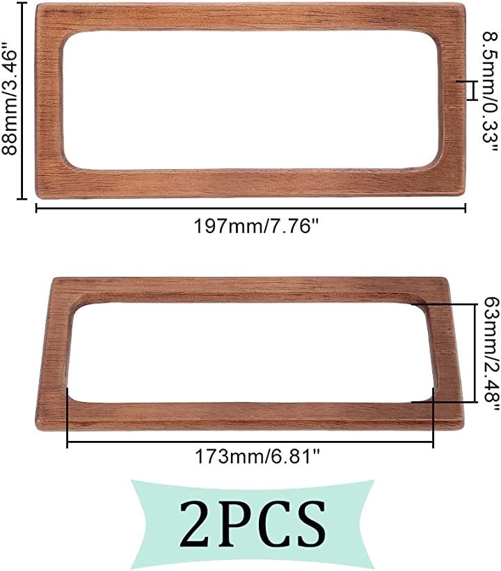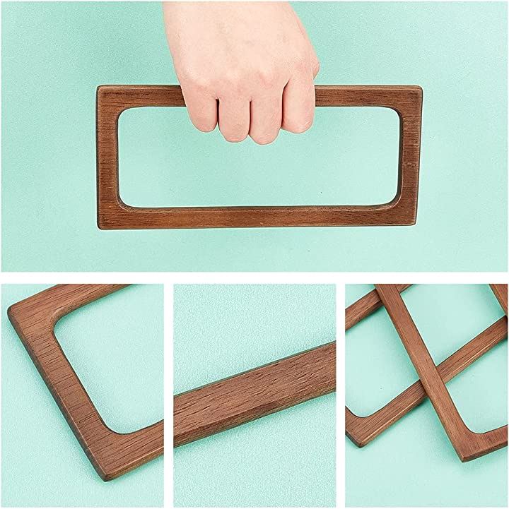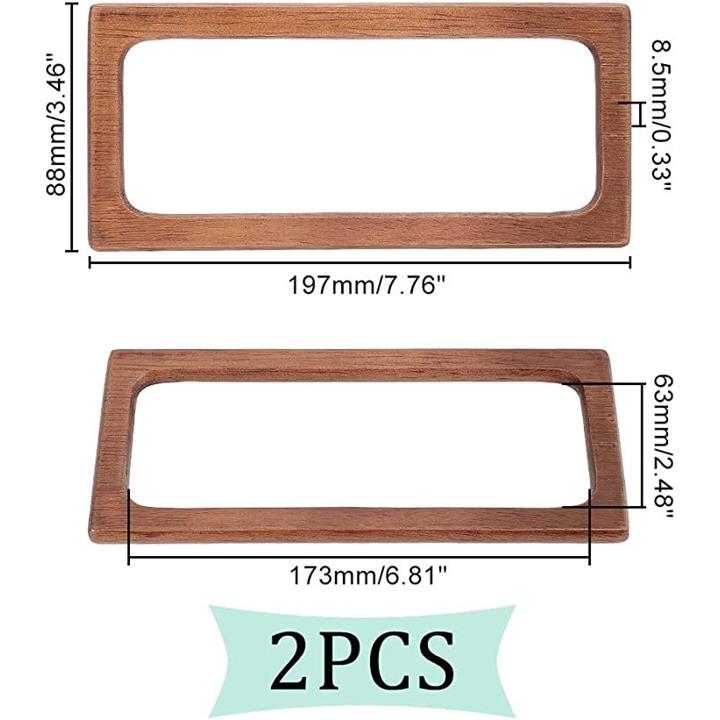 2本 木製 バッグ 持ち手 長方形 ハンドル ビーチバッグ用 ニットバッグ 編み込まれたバッグ 持ち手内径17.3x6.3cm