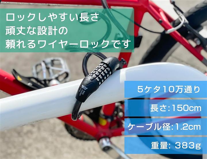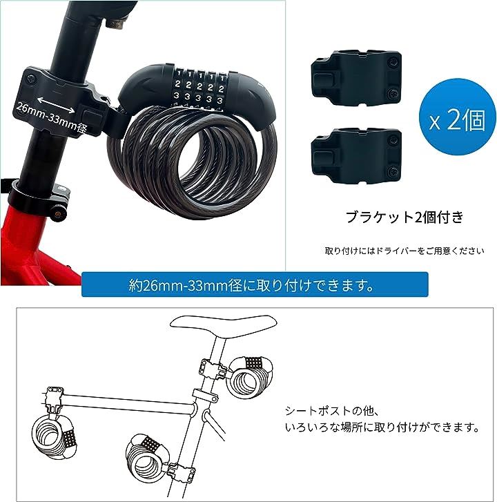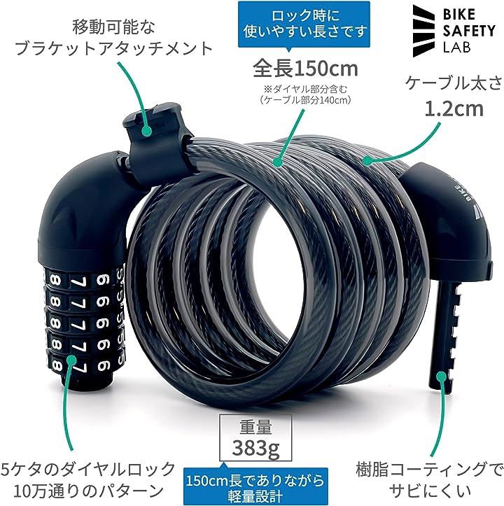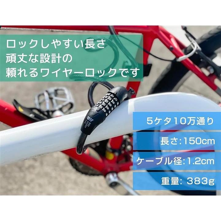 長さ150cm ワイヤーロック ホルダー2個付 5桁ダイヤル式 ケーブル太さ1.2cm ケーブルロック 盗難防止 自転車 バイク