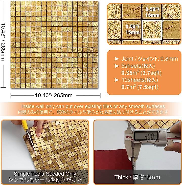 キッチン タイルシール 壁 DIY トイレ 洗面所 壁シートメタル モザイクタイル