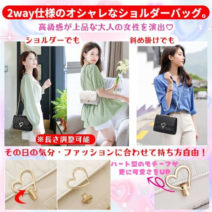 ポシェット 女の子 レディース 斜めがけ ショルダーバッグ おしゃれ 可愛い チェーン PUレザー ハート