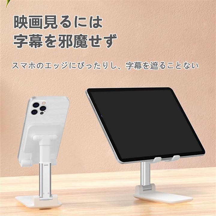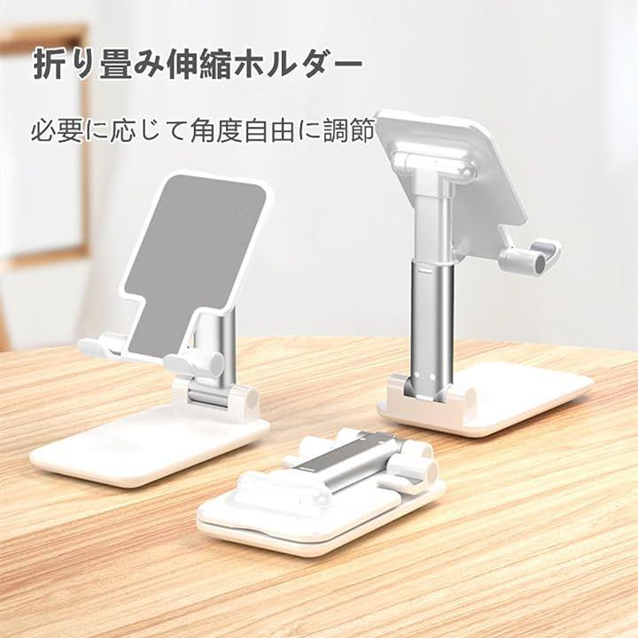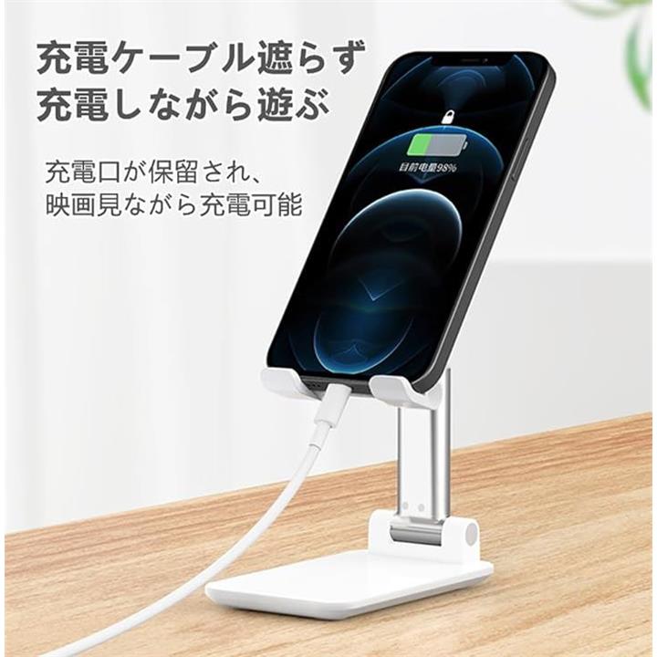 互換品スマホスタンド ホルダー 高さ角度調整可能 折りたたみ式 卓上 充電中操作可能 安定性 滑り止め ホワイト