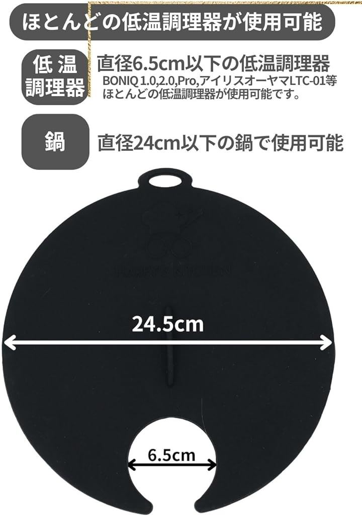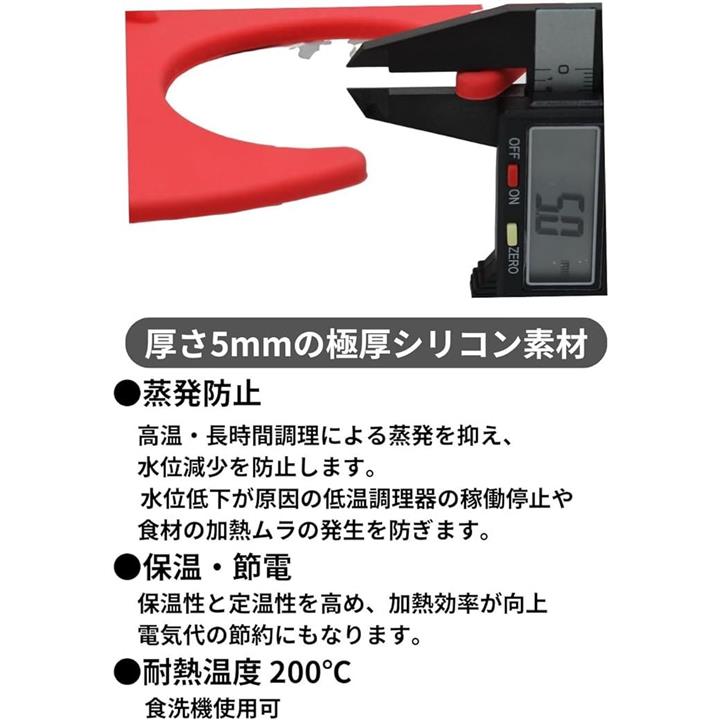 低温調理用シリコン鍋ふた 低温調理器 蒸発防止 水位低下防止 保温 節電 極厚 24.5cm