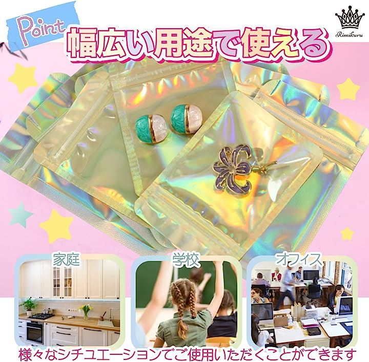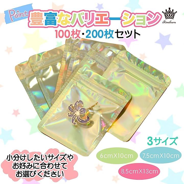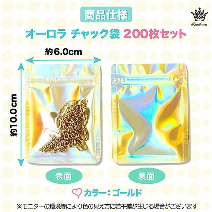 オーロラ チャック 袋 チャック付き袋 200枚セット ゴールド ミニ ジッパー付き袋 厚手