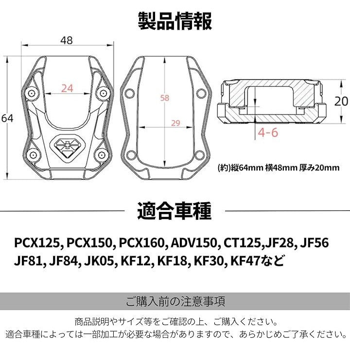 バイク サイドスタンド プレート 拡大 カバー 汎用 ブラケット PCX125 PCX150 PCX160 ADV150