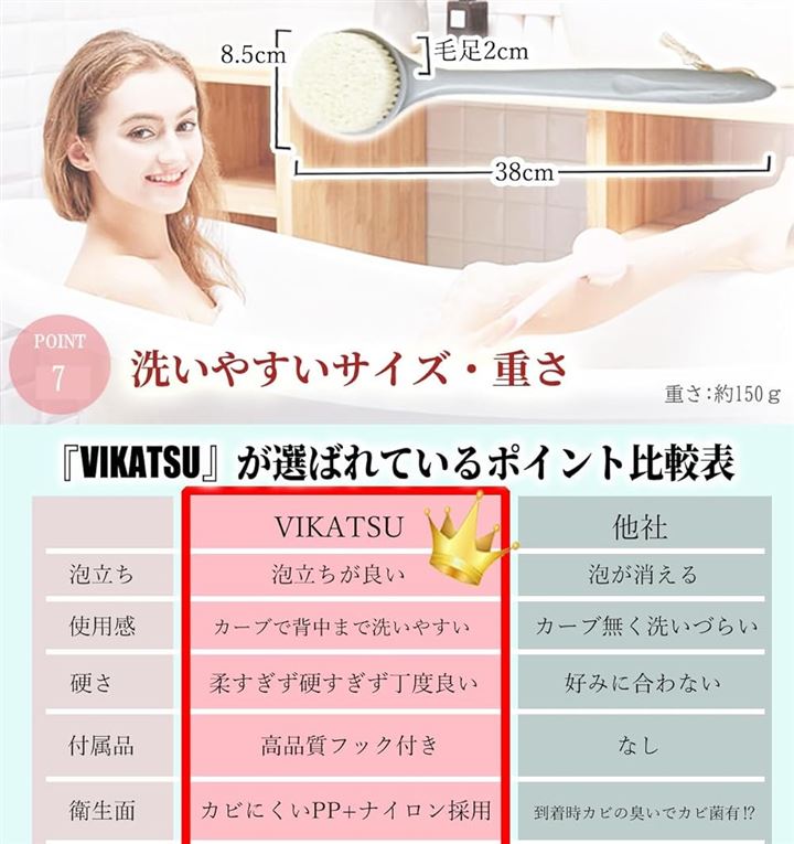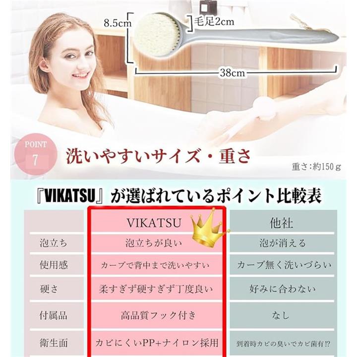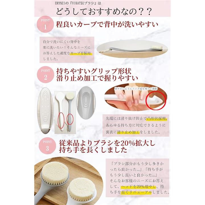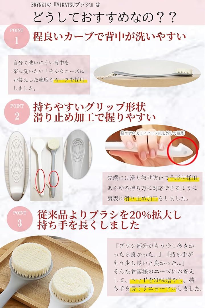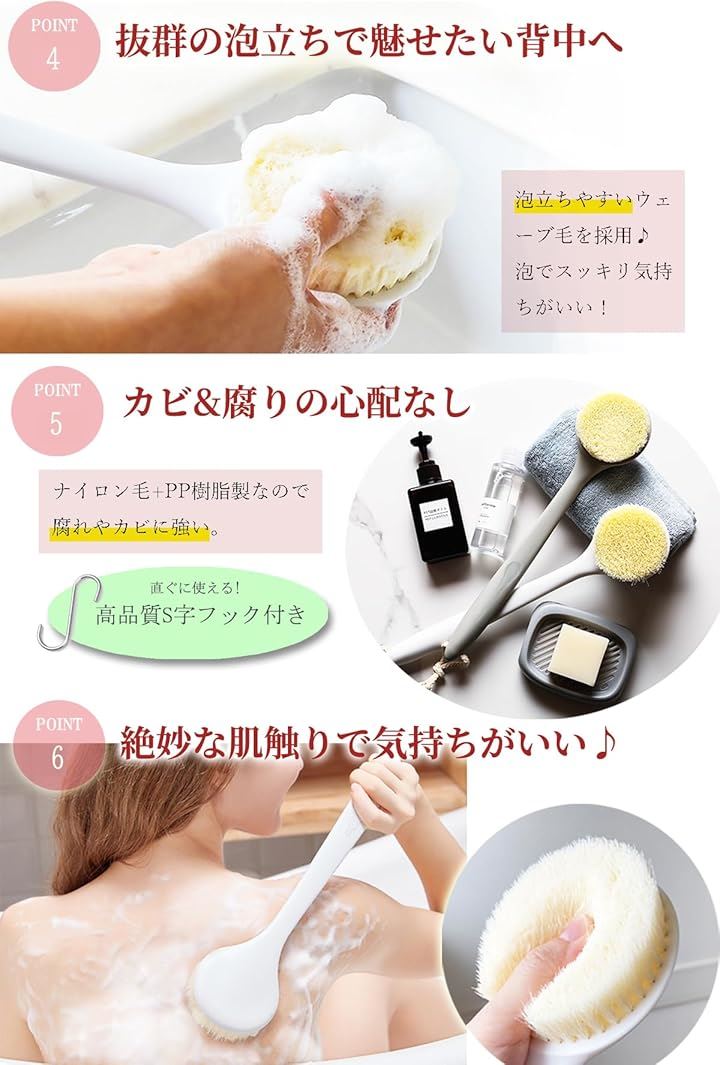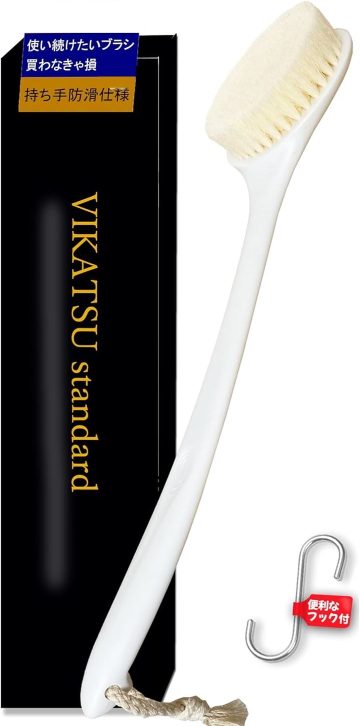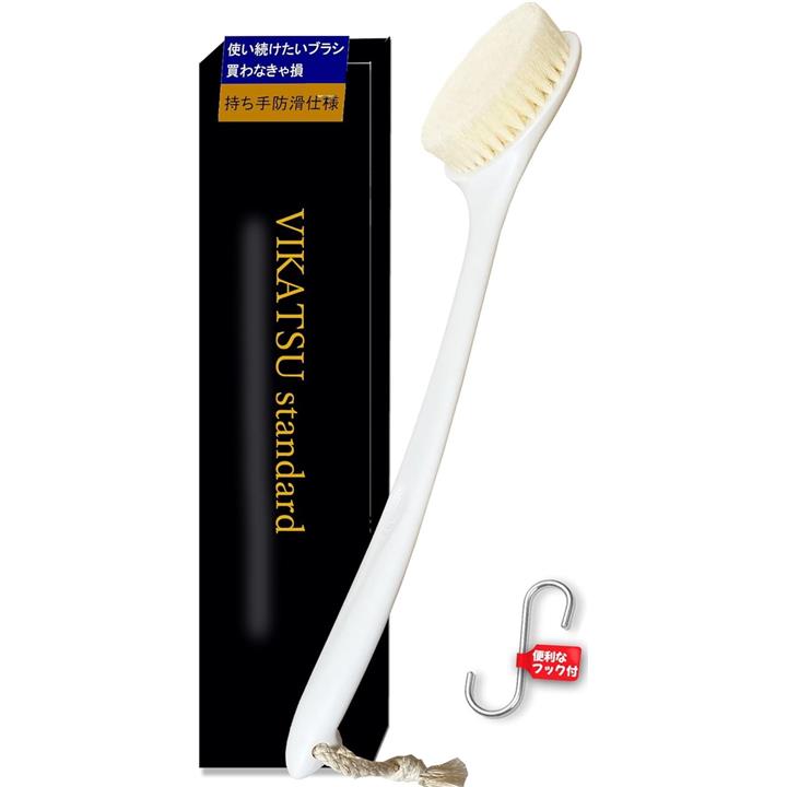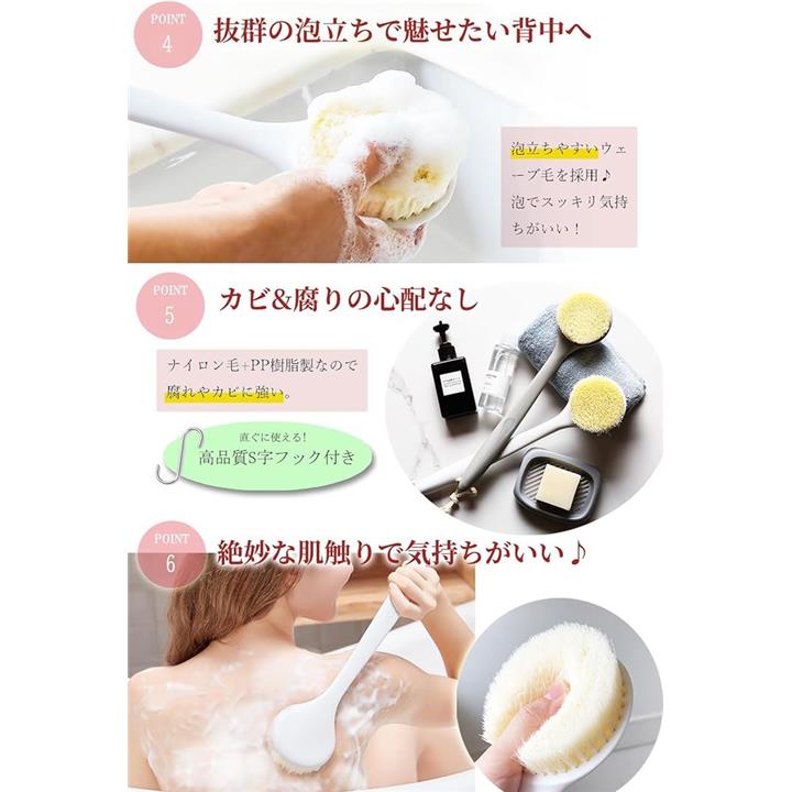 温泉入浴指導員監修 ボディブラシ ナイロン 背中 ケア 改良版 ロング カーブ カビが生えにくい ボディーブラシ付属品:S字フック