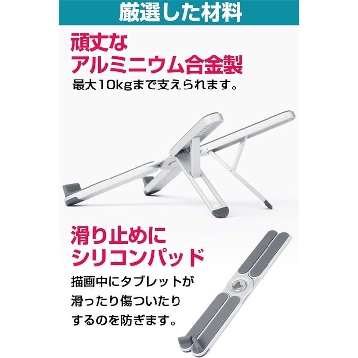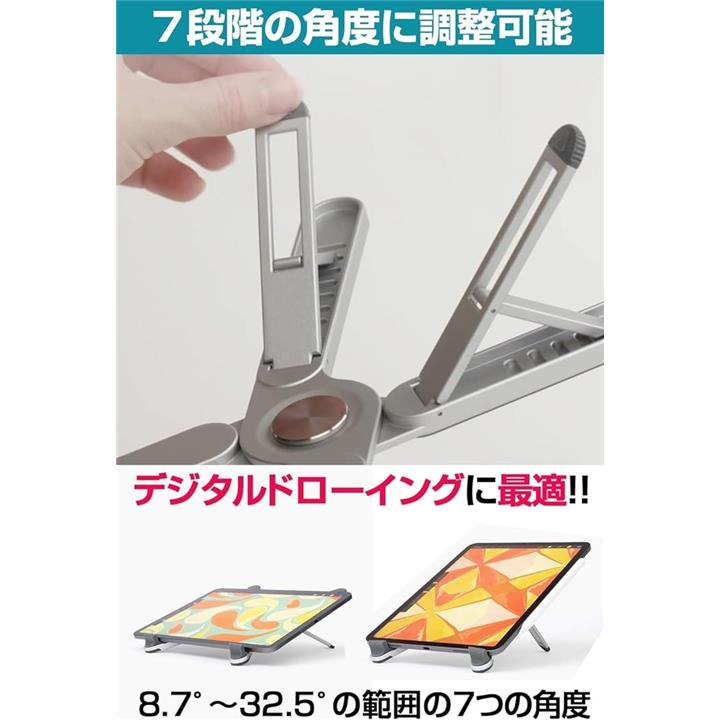 互換品iPad ノートパソコン 卓上イーゼル Air Pro Samsung Galaxy Microsoft Surfaceなど幅広く対応 シルバー