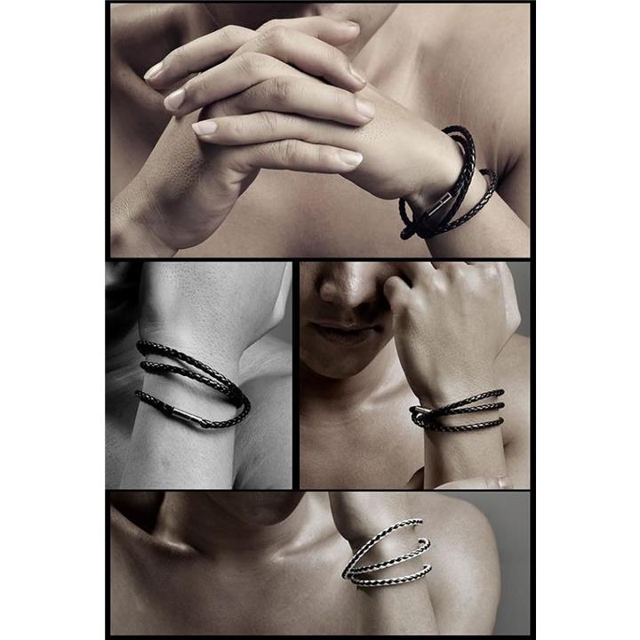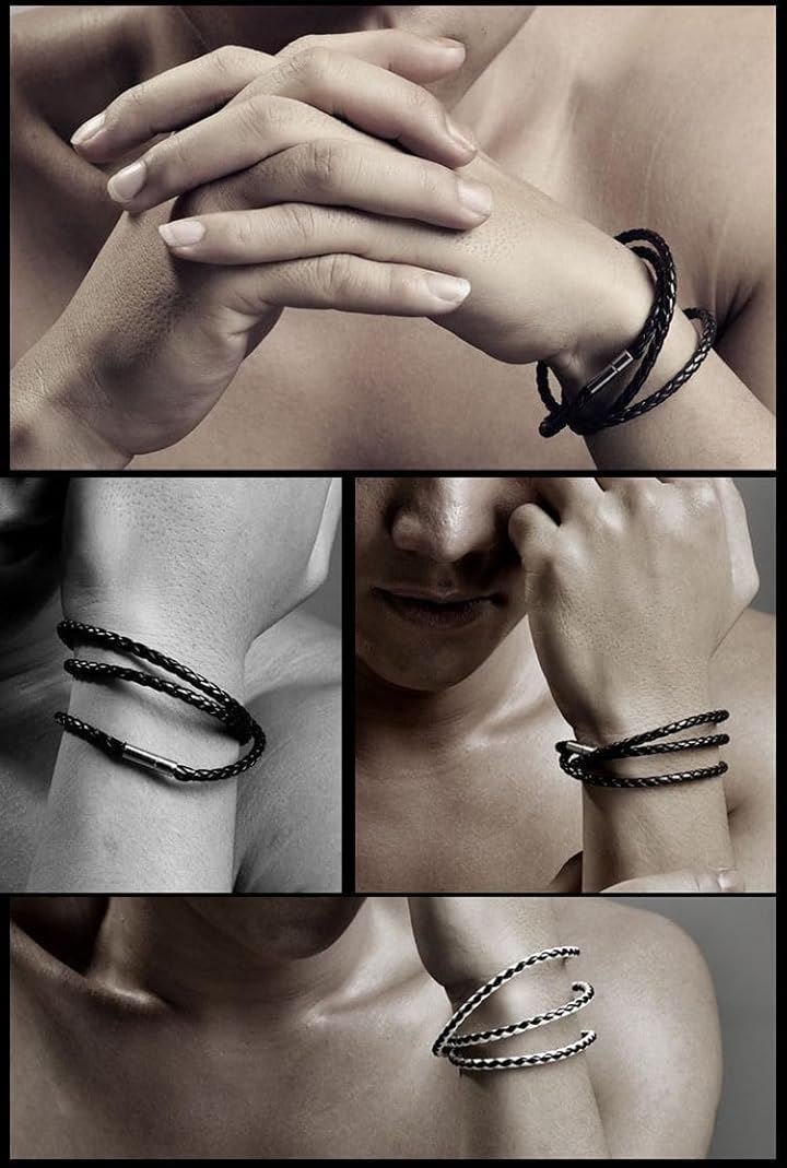 ブレスレット 編み込み メンズ 三重 PUレザー シンプル かっこいい お洒落 重ね付け 人気ファッションアイテム