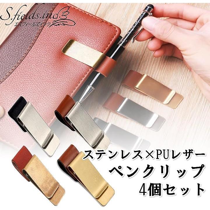 互換品 ペンホルダー 手帳用 ペンクリップ ペンループ 4色4個セット 後付け ノート 日記 汎用
