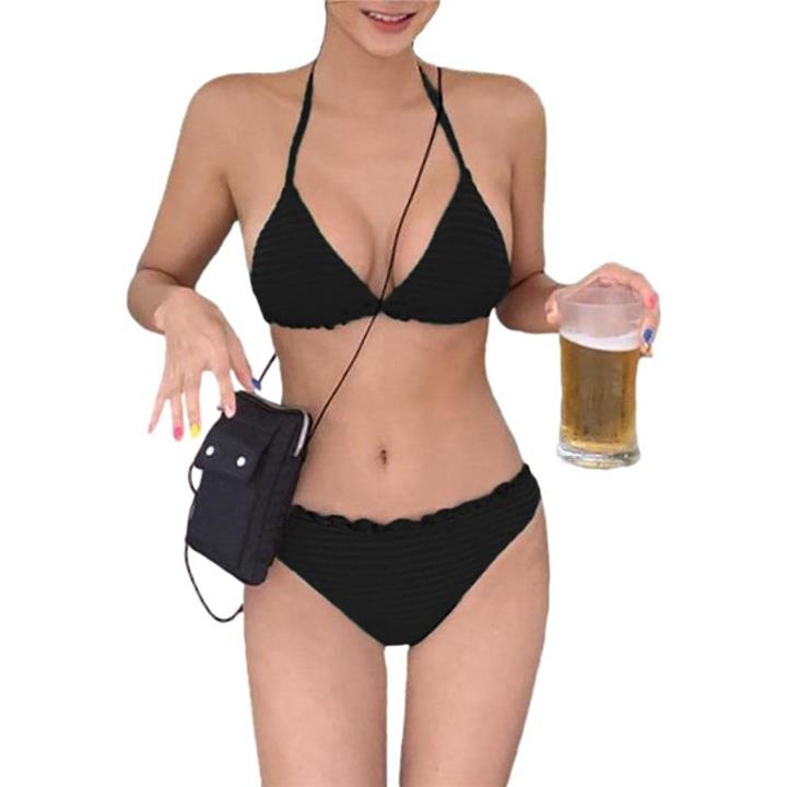 [ISLAYCAOLILA] 水着 レディース ビキニ セット ホルターネック 三角 スイムドレス ストラップ フリル セパレート パッド入り ワイヤーなし D01 |
