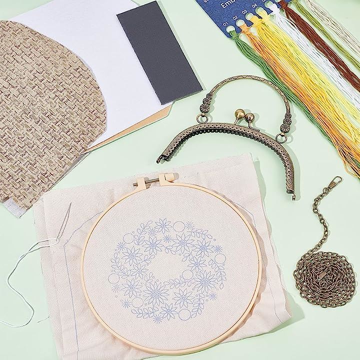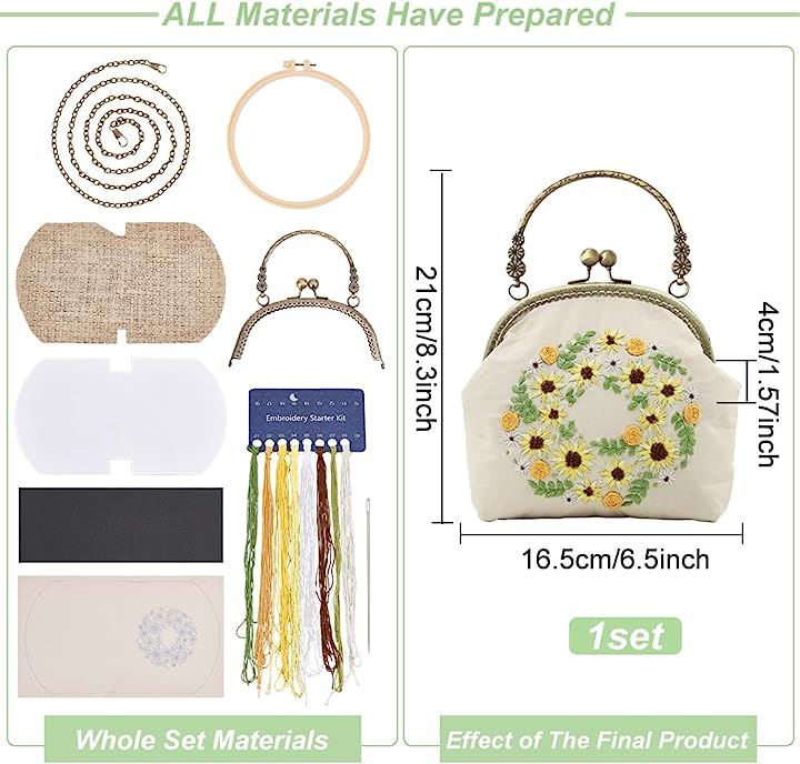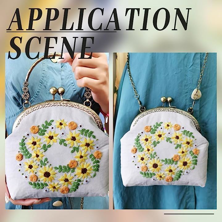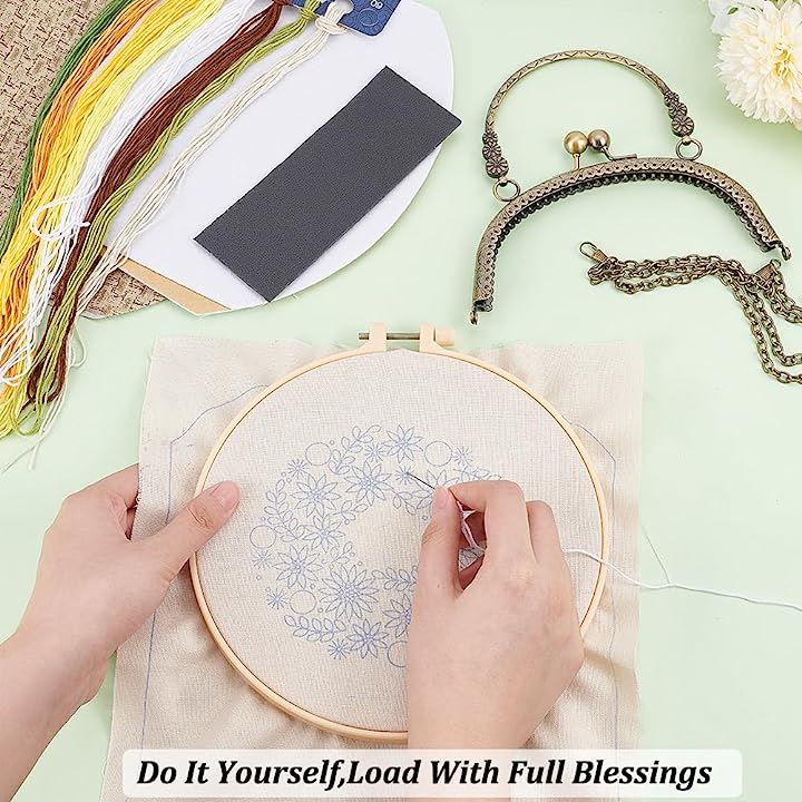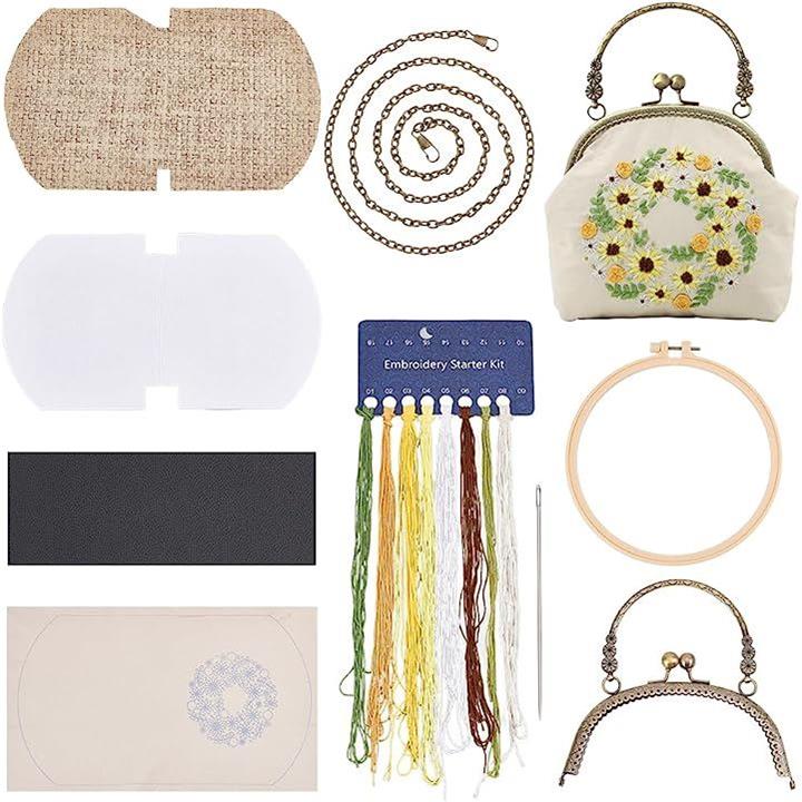 刺繍 クロスボディバッグ キット 民族スタイル 花柄 小銭入れ 作製キット キス 留め金 ロック ツール 袋 裁縫 素材 ハンドメイド クロスステッチ ニードルポイントキット