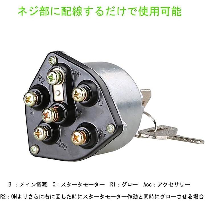 互換品イグニッションスイッチ エンジンスターター 建機 農機 船舶 コンバイン トラクター 汎用 鍵付き エンジンキー方式