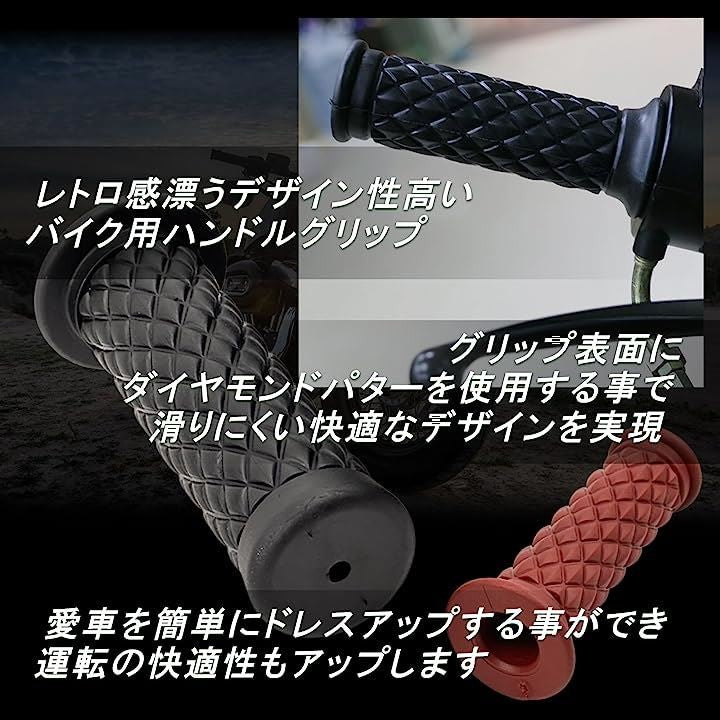 ハンドルグリップ 22.2mm 汎用 交換 ゴム ドレスアップ 部品 ダイヤ パターン 左右