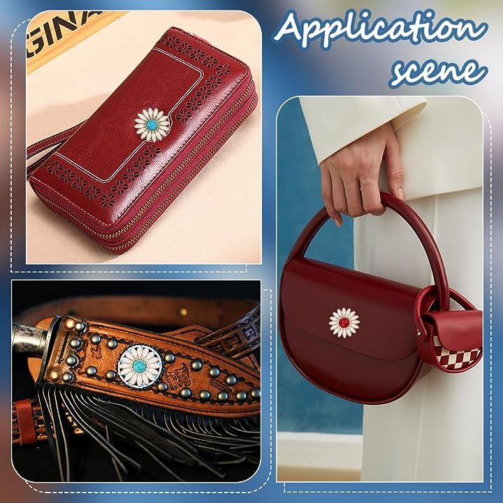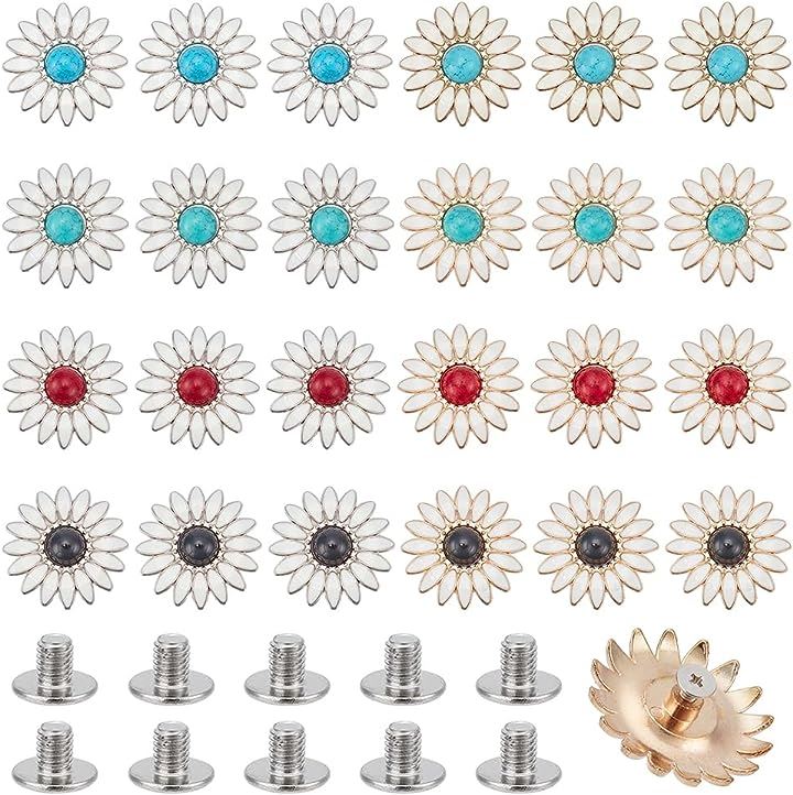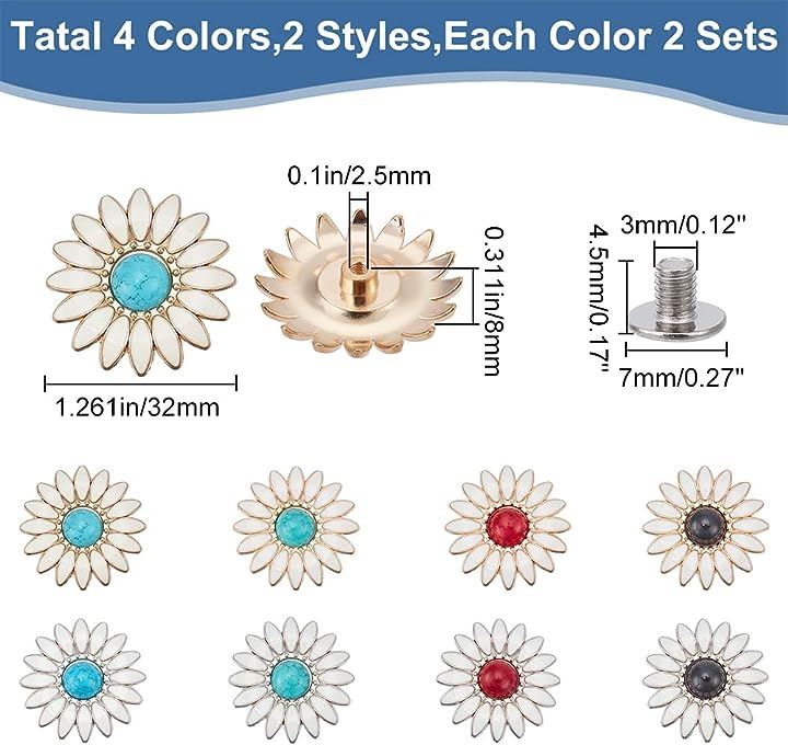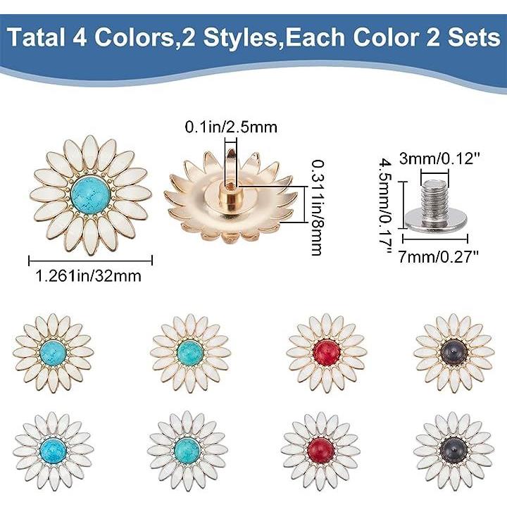 バッグ留め金 ひまわり型 装飾 バックル 2色 6セット ターコイズ柄 パース装飾