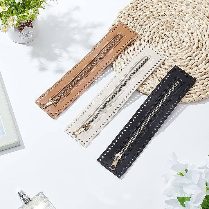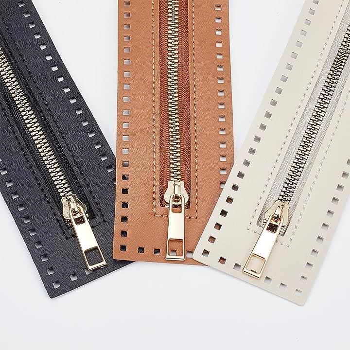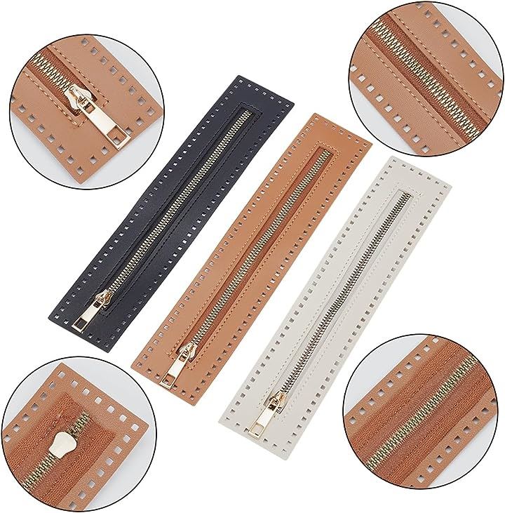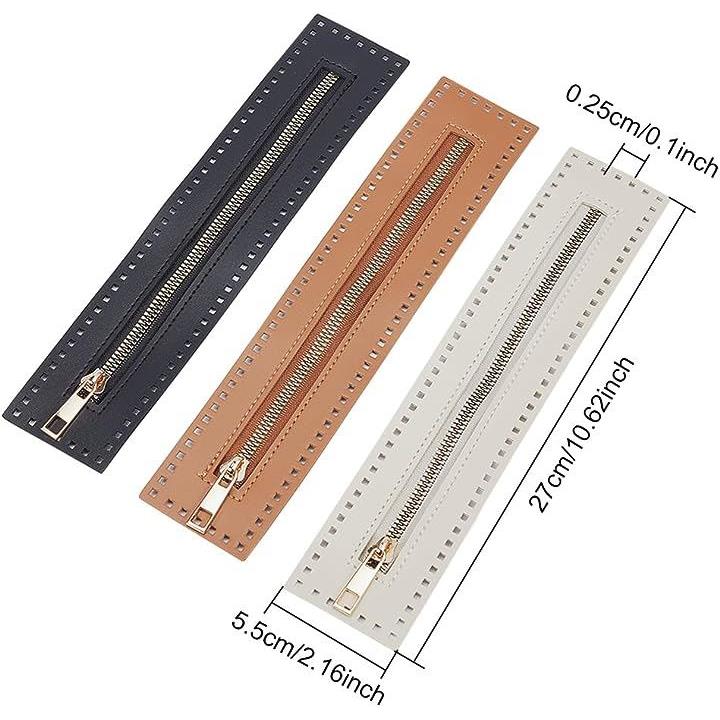 3色 縫製用PUレザージッパー、長さ27cm ハンドバッグ 金属製分離ジッパー フレーム アクセサリー 編み物 かぎ針編みバッグ用 DIYショルダーパース作り ソーイングクラフトプロジェクト用