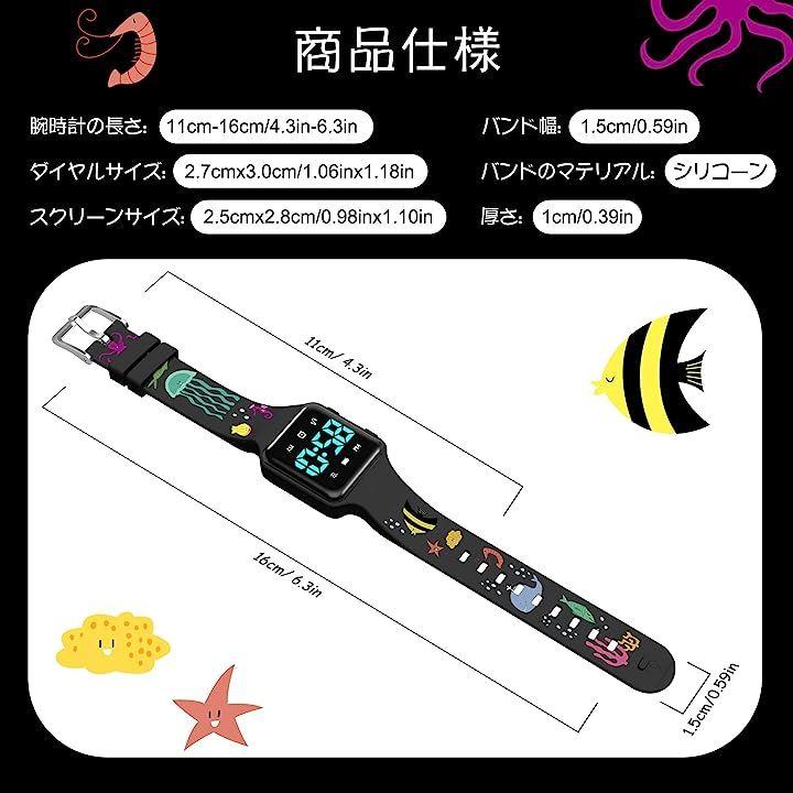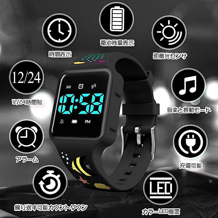 LEDマルチカラーイルミネーションディスプレイと大きな数字表示で、より子供向けのデジタル腕時計です。
