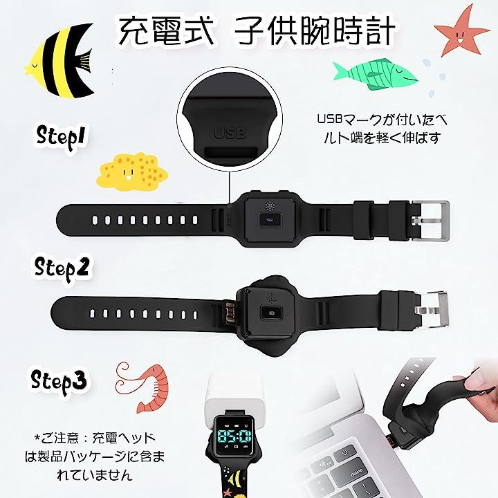トイレ トレーニング 子供腕時計 充電式 キッズ デジタル 腕時計 イルミネーション音楽腕時計 取扱説明書付き |