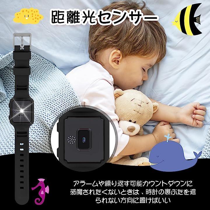 「親切で実用的な距離光センサー機能」:腕時計の底の蓋に距離光センサーがあり、子供の腕/障害物と密接することにより、時間になるとアラームが鳴ります。