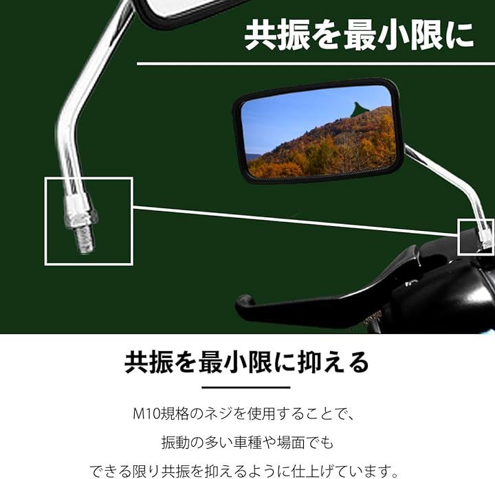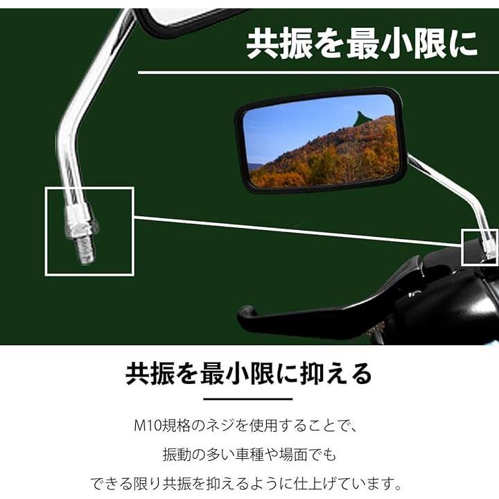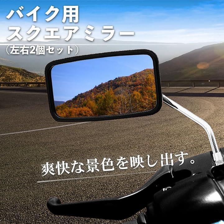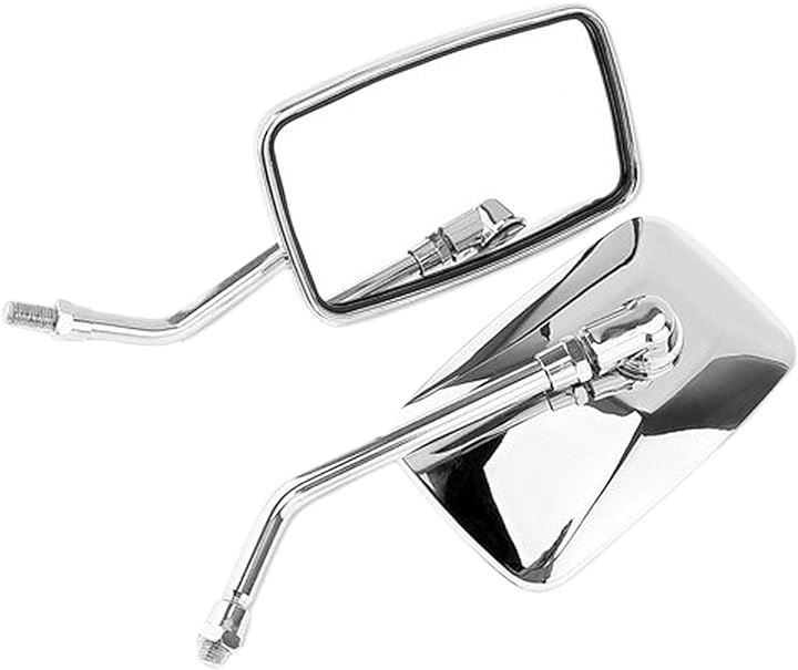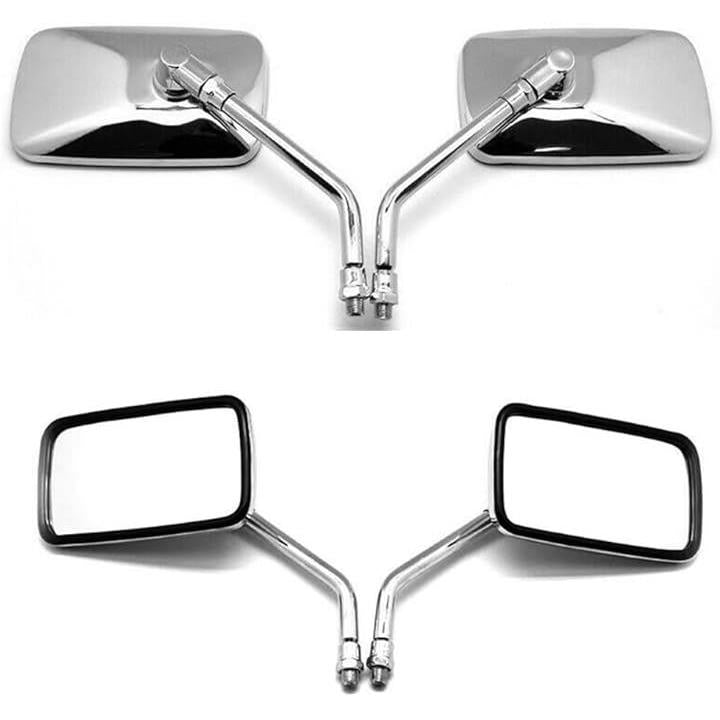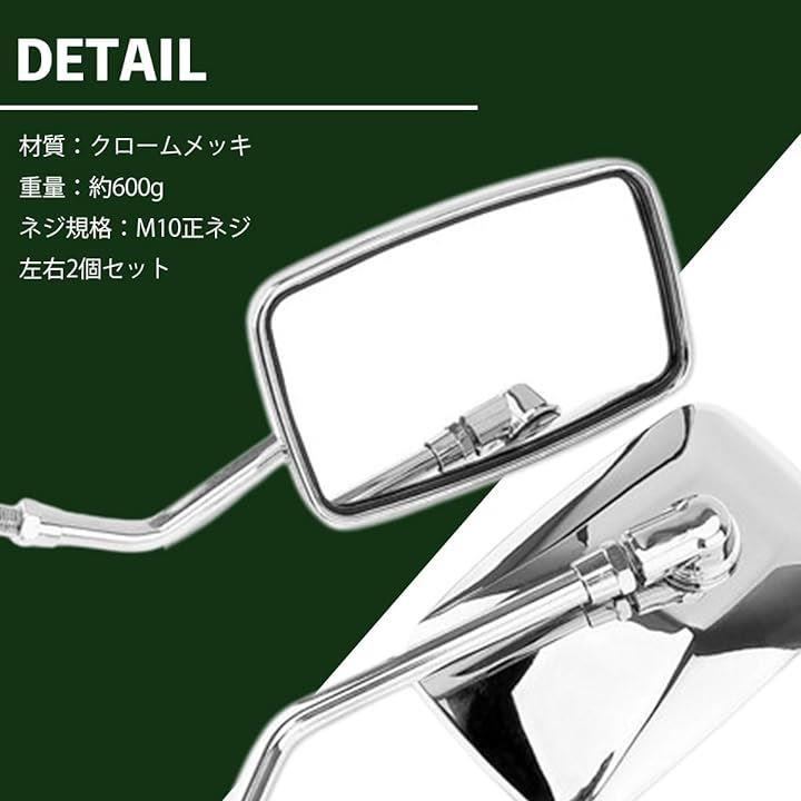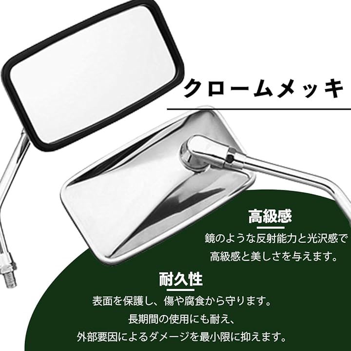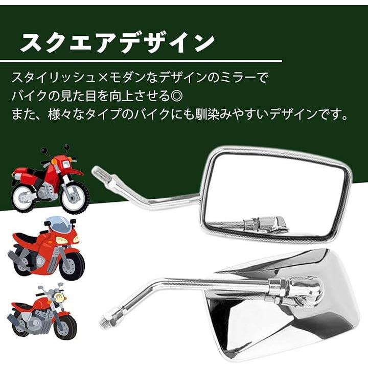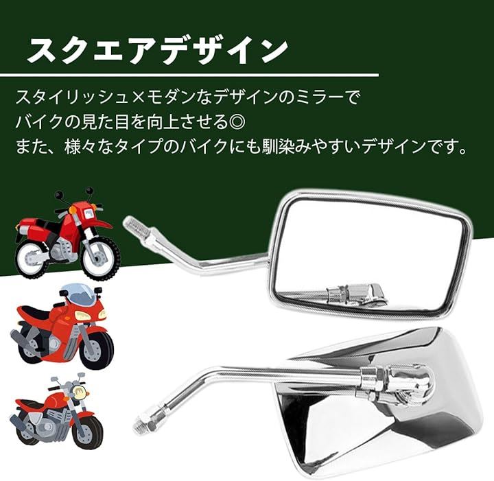 互換品 バイク ミラー スクエア 角型 メッキ 10mm 汎用 正ネジ 左右 セット オートバイ スタンダード ハンドル 四角 シルバー おしゃれ