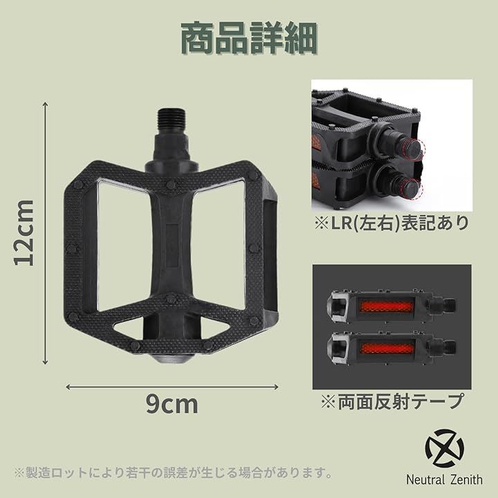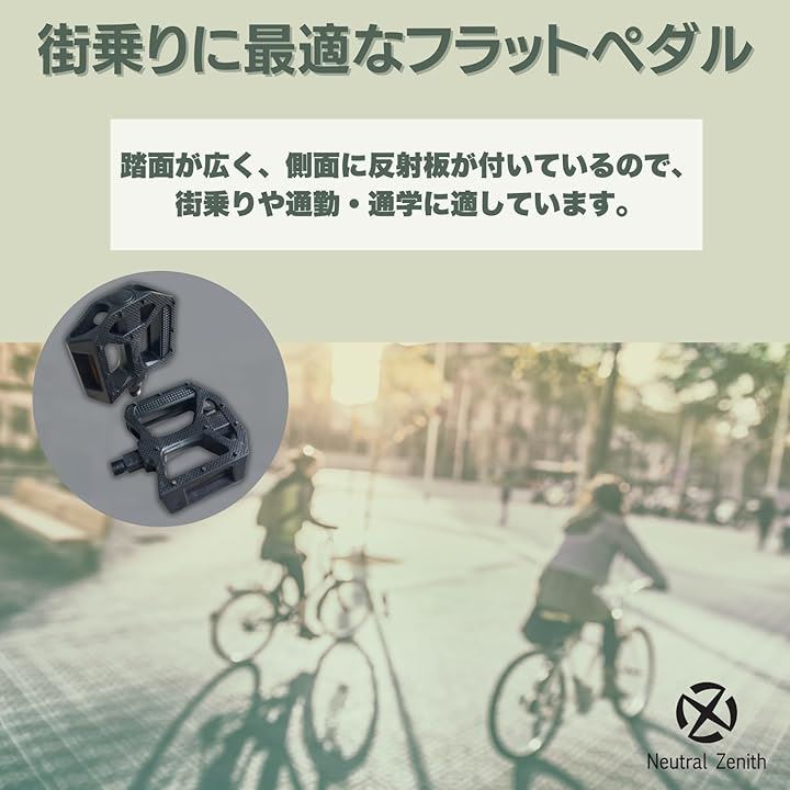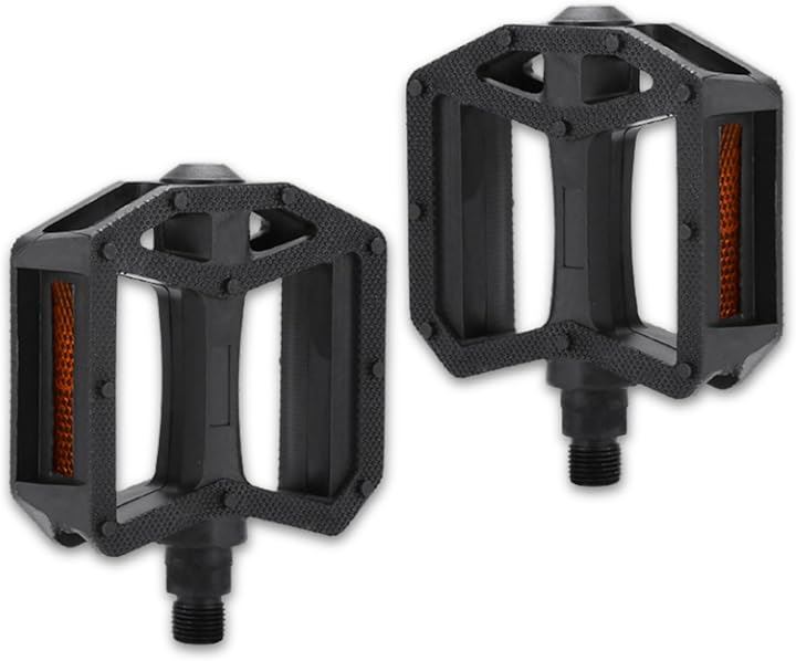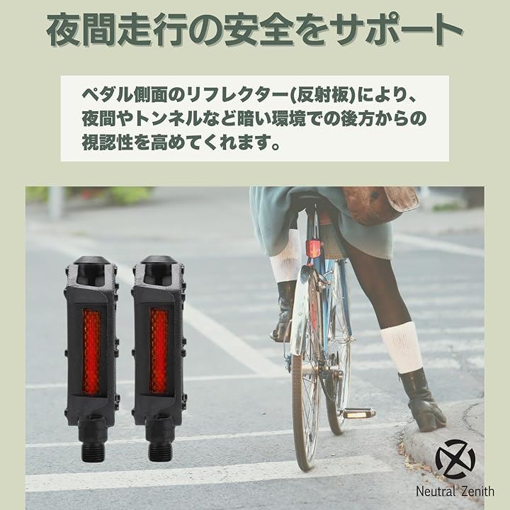 自転車ペダル 軽量 フラット 反射リフレクター 樹脂 BMX MTB クロスバイク 大面積 ブラック 左右セット
