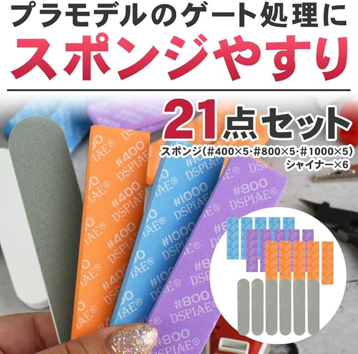 プラモデル用シャイナー スポンジヤスリ 曲面対応 カット可能 細部処理 表面仕上げ 艶/マット仕上げ 21点
