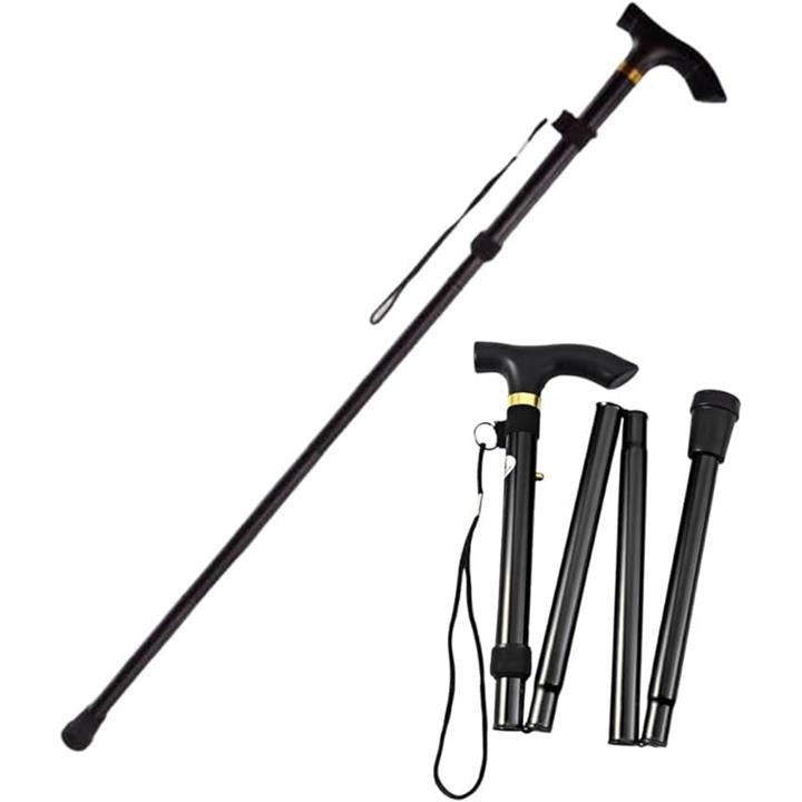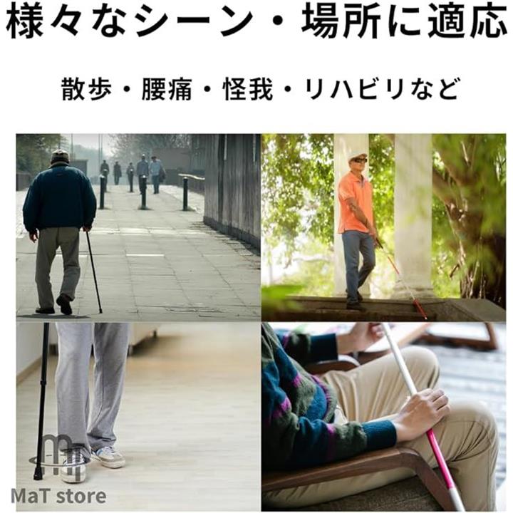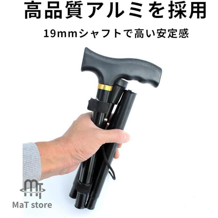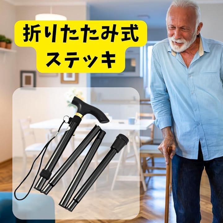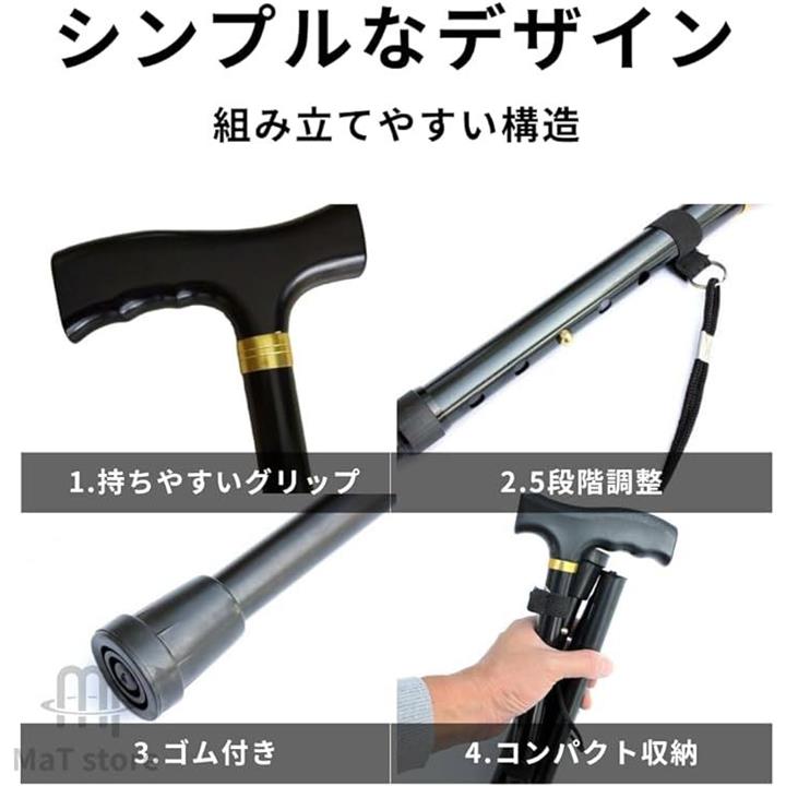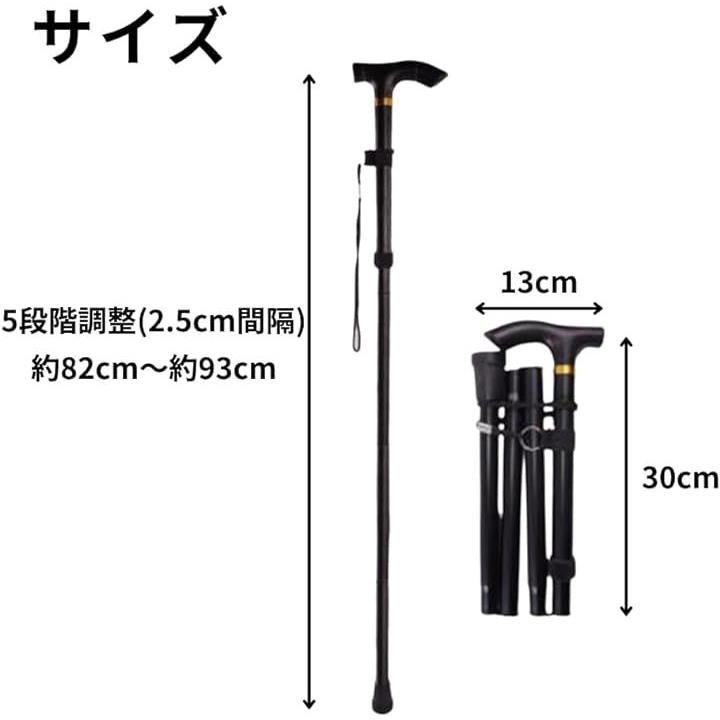 折りたたみ式 ステッキ 杖 アルミ 軽量 介護 5段階調整 伸縮 つえ ブラック