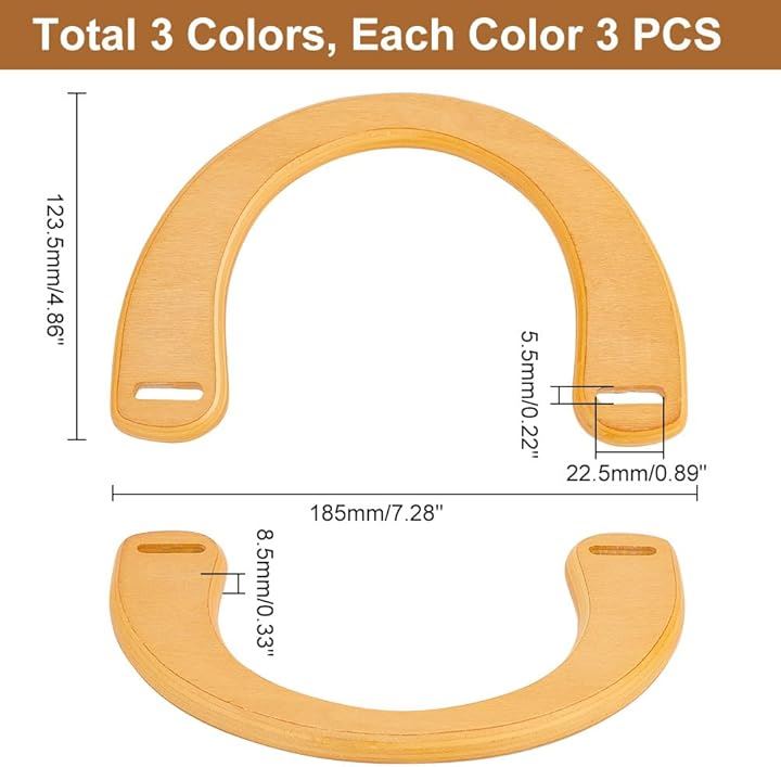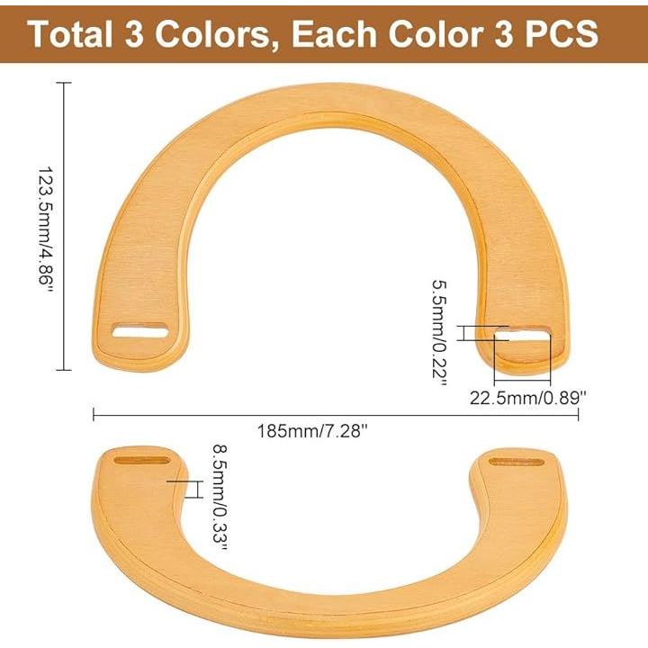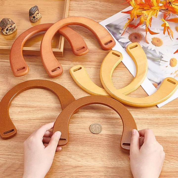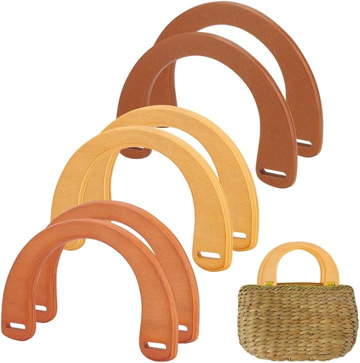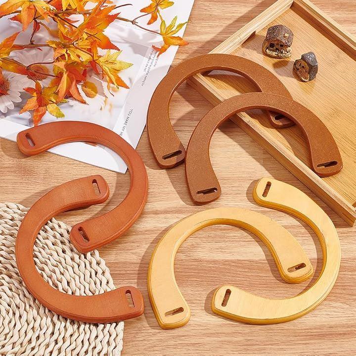 互換品 6個 木製持ち手 手さげ バッグ用 U形 ハンドル 和風 取って DIY 手芸用 ハンドメイド 修理 交換用 3色 茶色