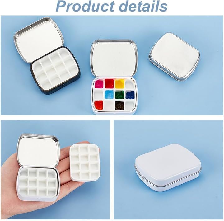 3個セット パレット 小さい 水彩画 調色パレット 水彩ケース 絵具ケース 顔料パレット 絵画画材 絵皿 蓋付き 油絵 漫画 ホビー アーティスト 学生 6.2x5x1.7cm