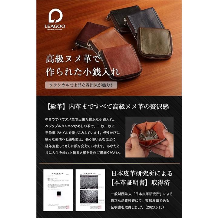[LEAGOO] 小銭入れ メンズ 「人気雑誌 世田谷ベース 掲載商品」 イタリアンレザー 本革 コインケース 小さい 父の日 (ブラック) |
