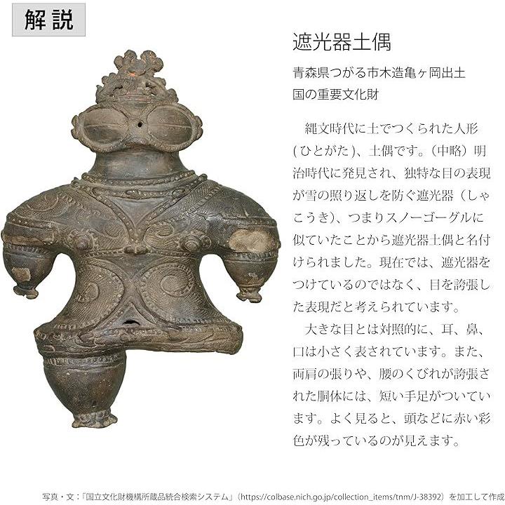 同じタイプの土偶は東北地方で多く出土していますが、その中でも特に有名な、青森県つがる市にある亀ヶ岡遺跡出土の土偶をデザインしました。