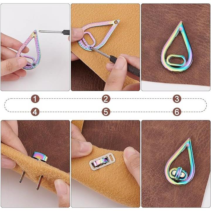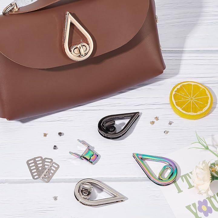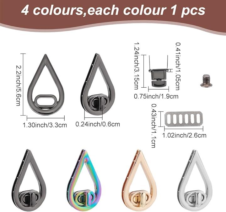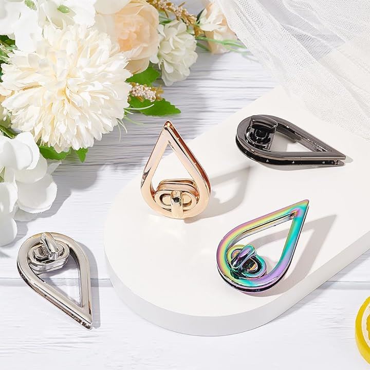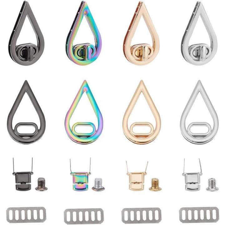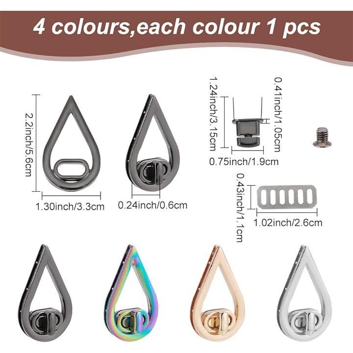 4色 ハンドバッグ ツイストロック金具 金属製ハンドバッグ クラッチ 留め具 ティアドロップ型 ターンロック ファスナー クリップ バックル フリップカバー付き