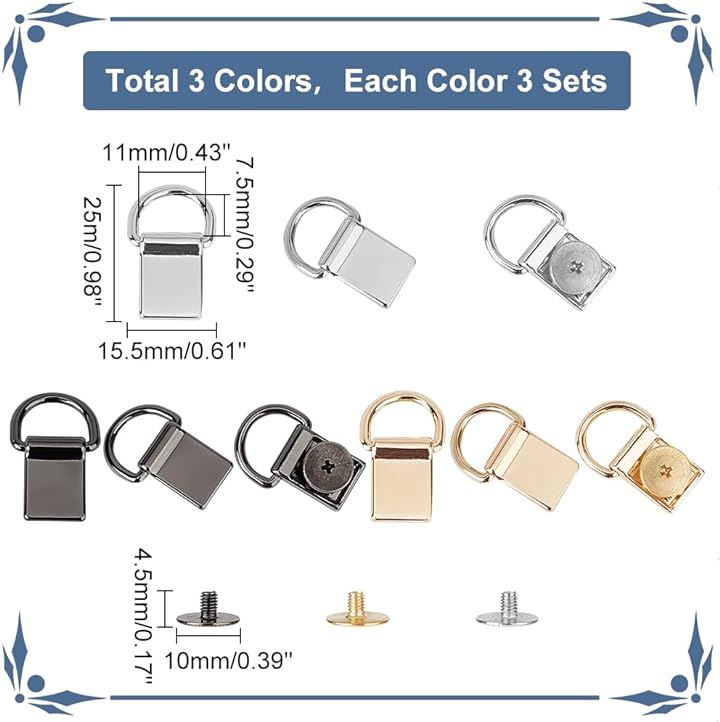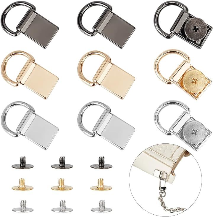 3色 パースサスペンションクラスプ 9セットメタルバッグストラップコネクタークラスプ Dリングコネクターバックル ネジ付き