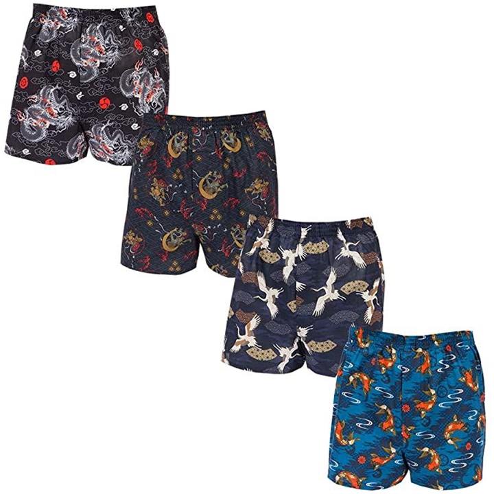 [Y's factory] 和柄 トランクス メンズ 下着 前開き 綿100% カジュアル ランダムセット 詰合せ 吸汗速乾 通気性 和風 龍 虎 風神 雷神 鶴 お土産 |