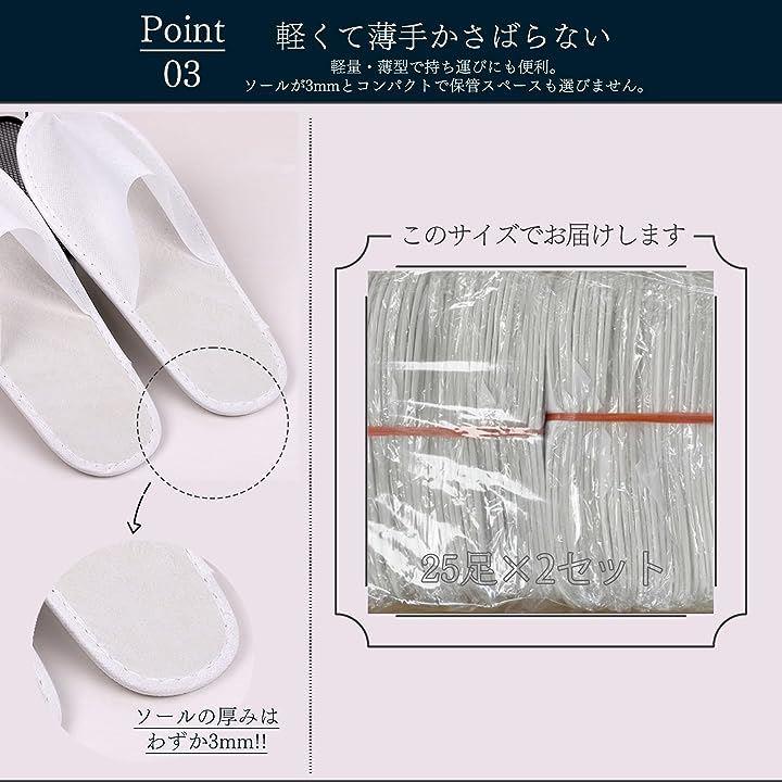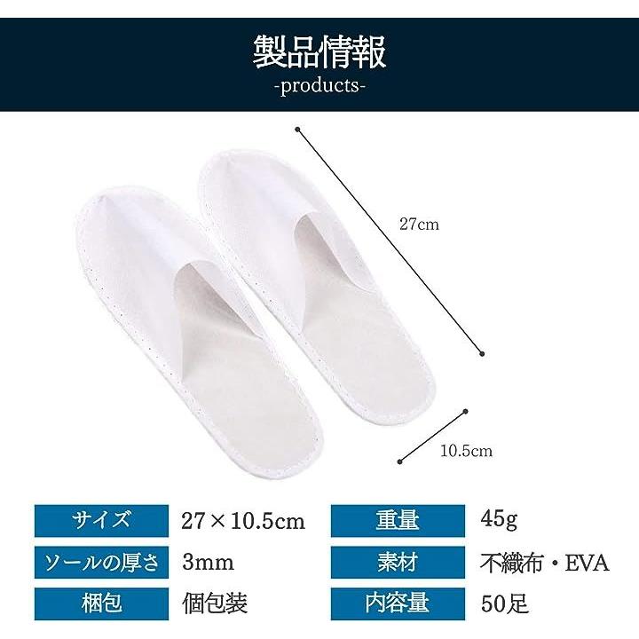 スリッパ 使い捨て 業務用 50足 不織布 ペーパー 前閉じタイプ 3mm厚ソール 個包装