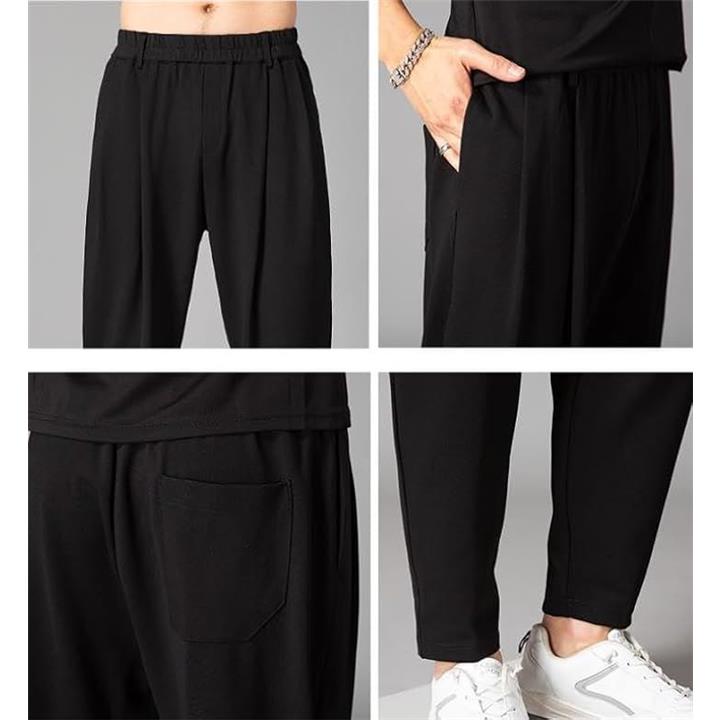トレーニングパンツ フィットネス メンズ ウォーキング アウトドア スポーツ ジャージ クロップド 登山 ブラック