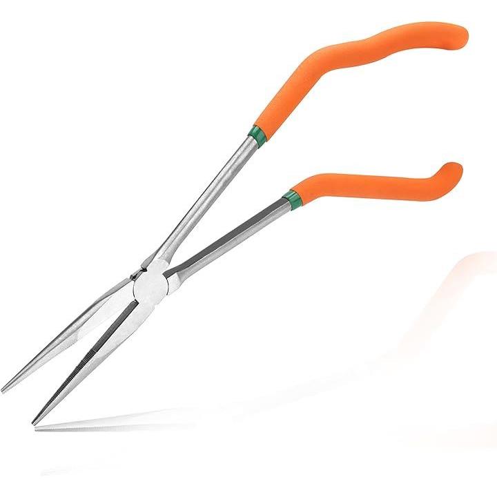 ラジオペンチ ロング 万能ラジオペンチ S字グリップ 角度付きラジオペンチ ニッパー ロングタイプ ストレート ロングノーズプライヤー ワイヤーカッター 全長230mm ロングリーチ 曲げハンドル 負担軽減 溝付 滑り止め加工 切断刃付 軽量