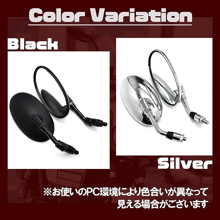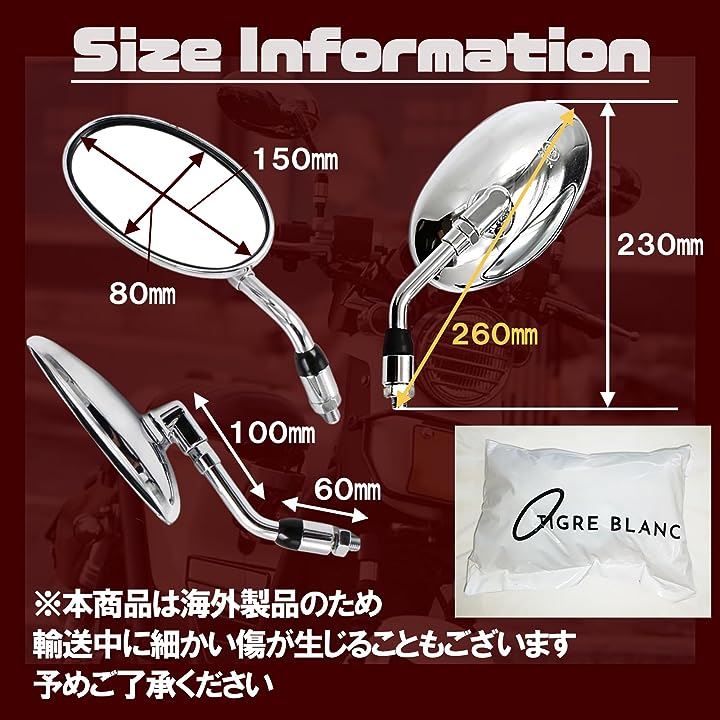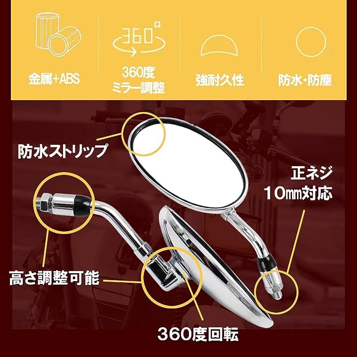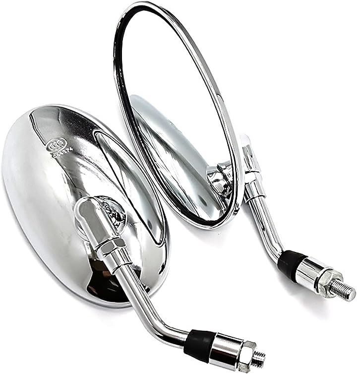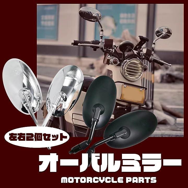 互換品オーバル バイク ミラー ショート 汎用 正ネジ 10mm 凸面 クリア 鏡 角度 調整