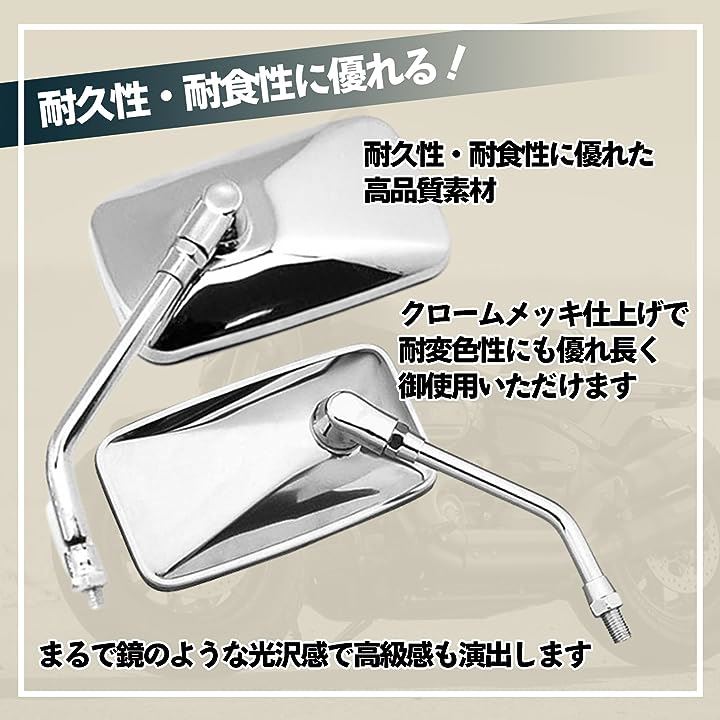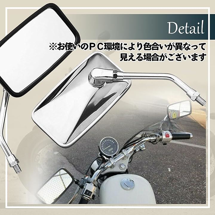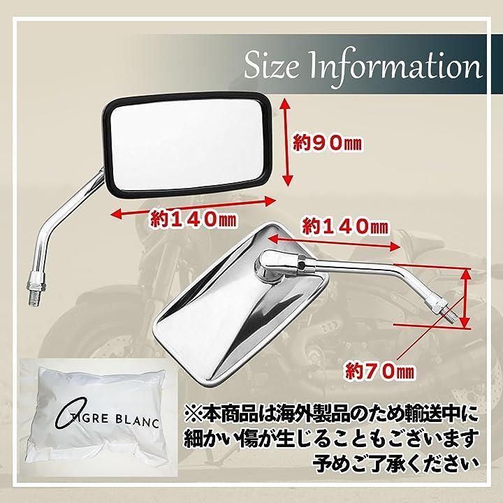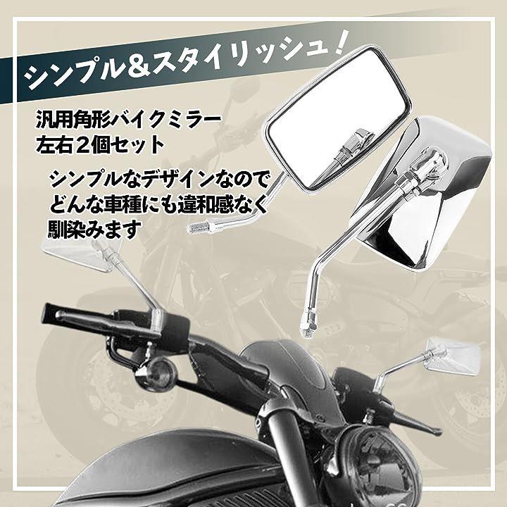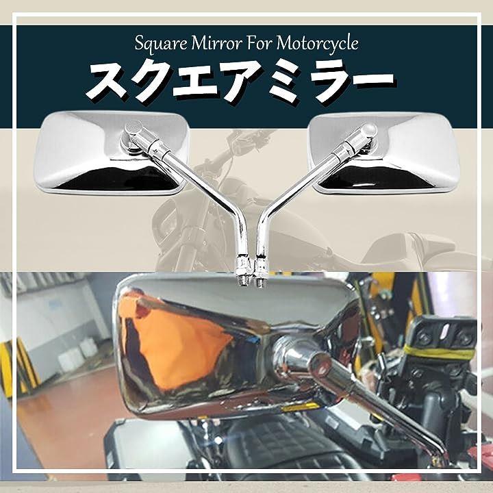 互換品ショート スクエア ミラー バイク 汎用 サイドミラー 10mm 正ネジ 左右 セット シルバー メッキ