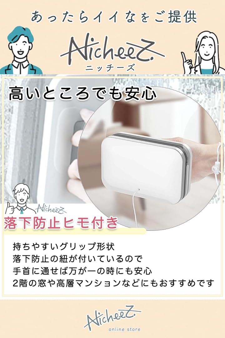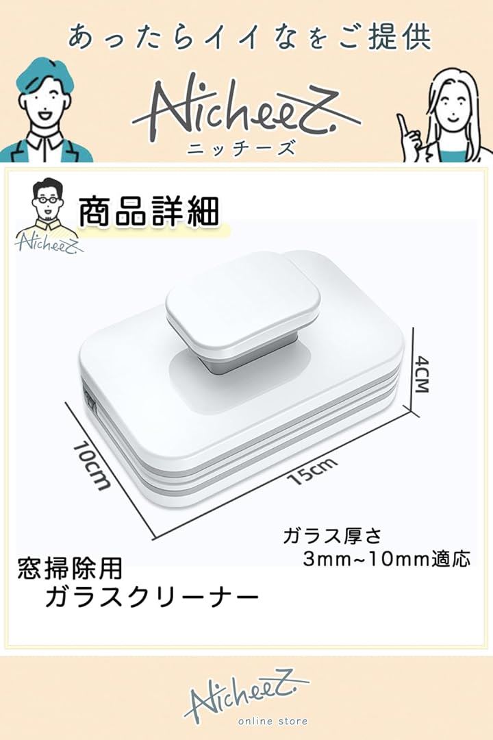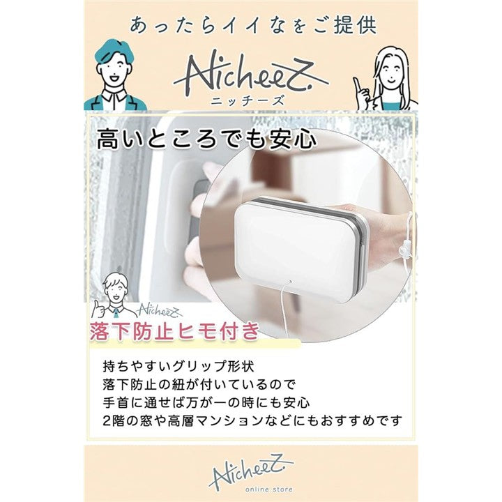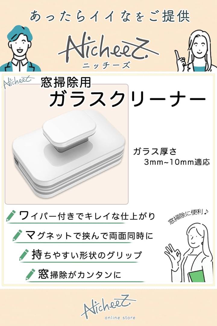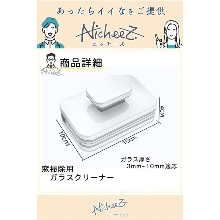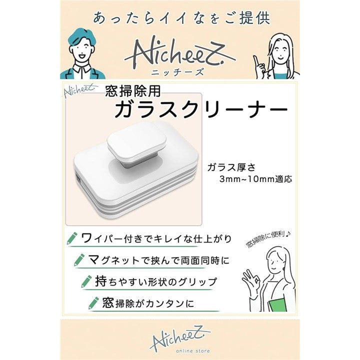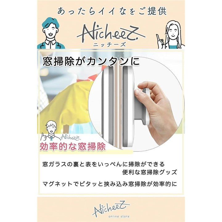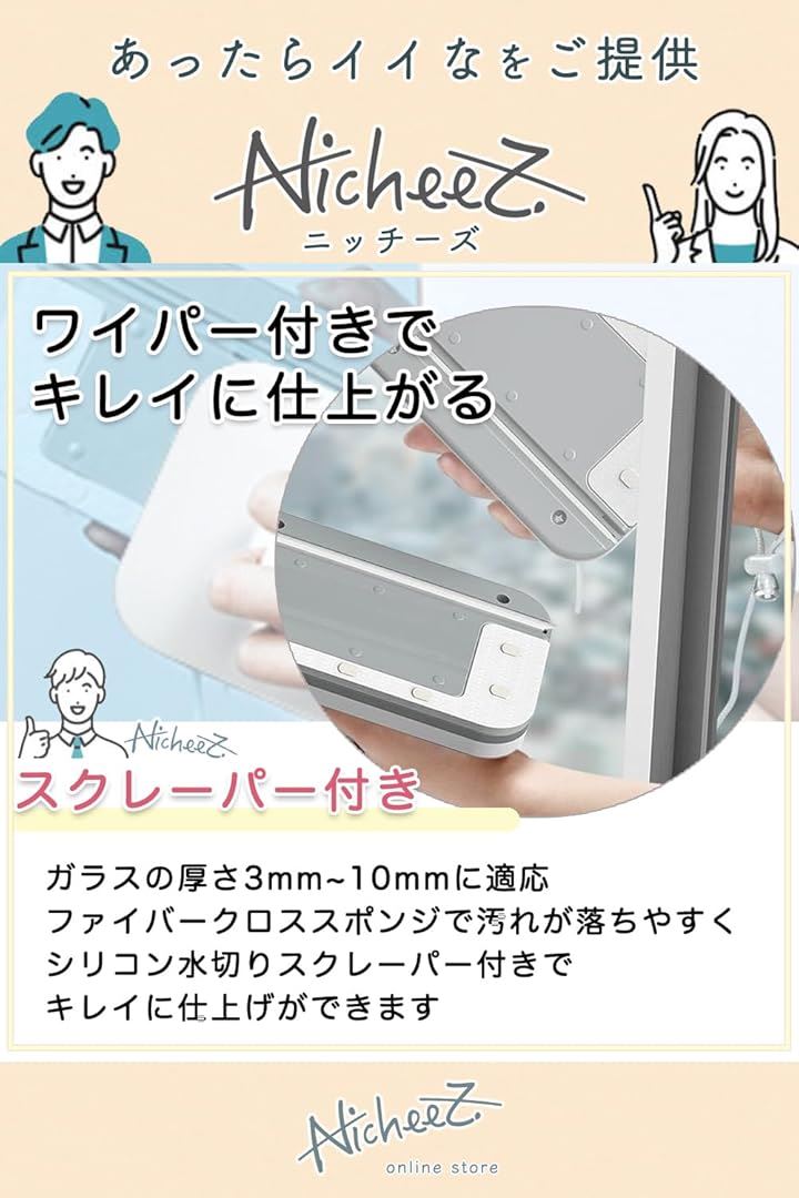 窓掃除用 ガラスクリーナー 両面 ワイパー マグネット式