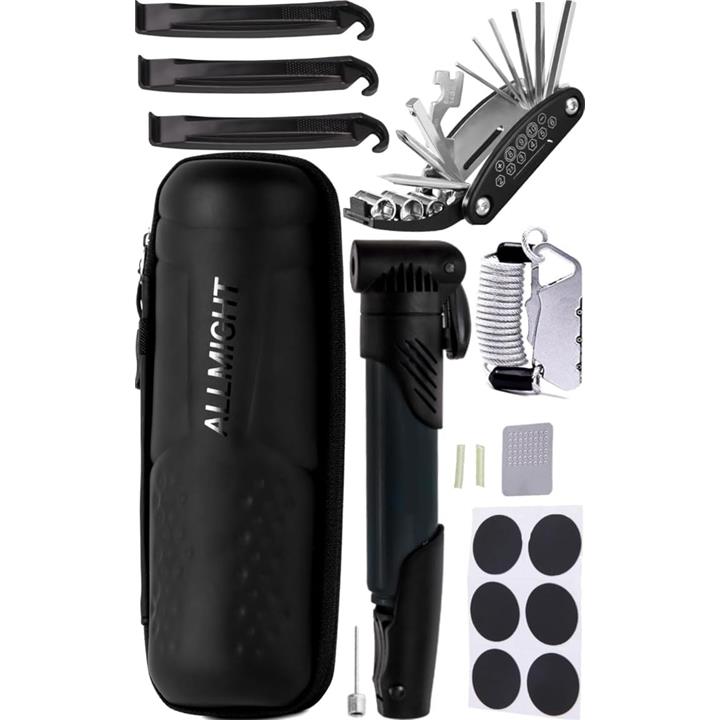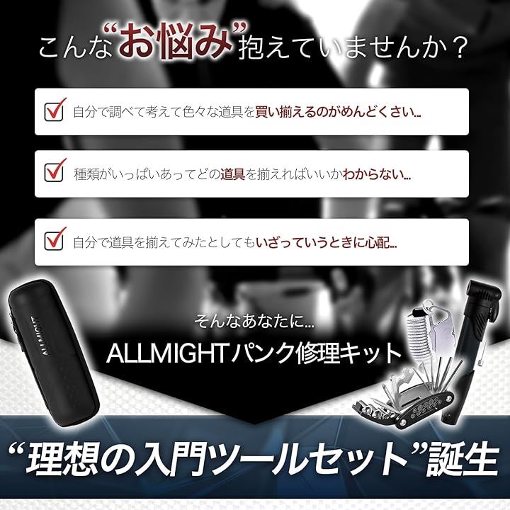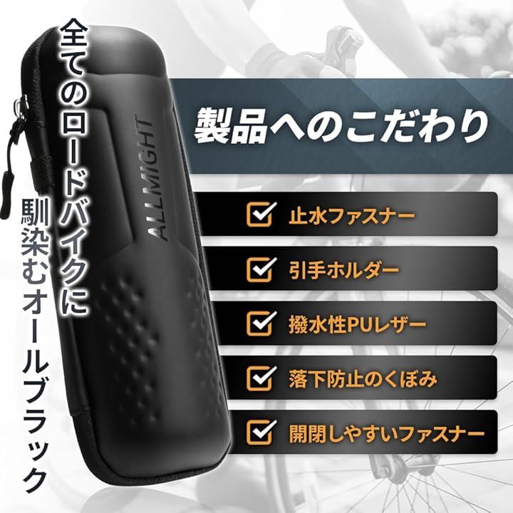 オールマイト パンク修理キット 入門ツールセット パンク修理マニュアル付属 ロードバイク ツールボトル ロング ジッパーホルダー付 PU撥水性上質素材 止水ファスナー 自転車