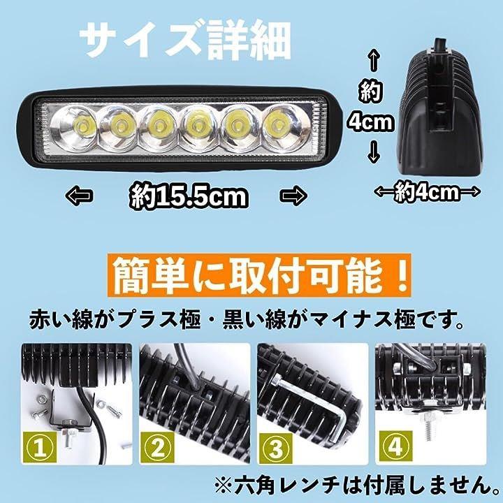 2個セット 18W LED作業灯 吊り下げ ワークライト IP67防水 6連 車 オートバイ トラック 機械 バックランプ フォグランプ