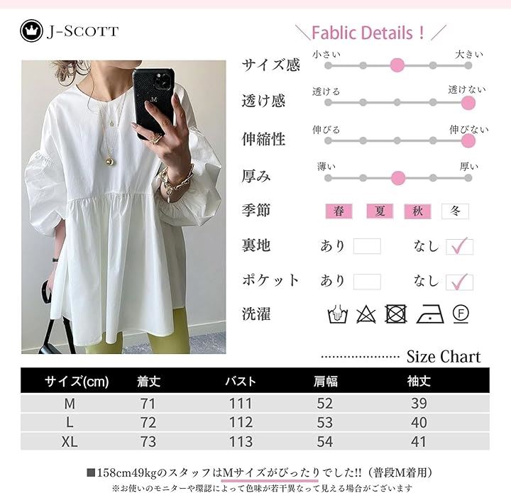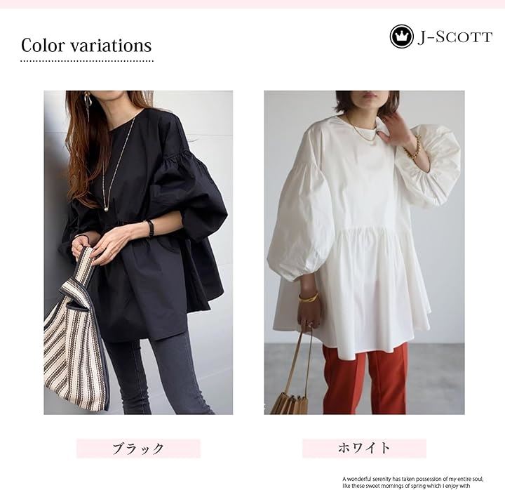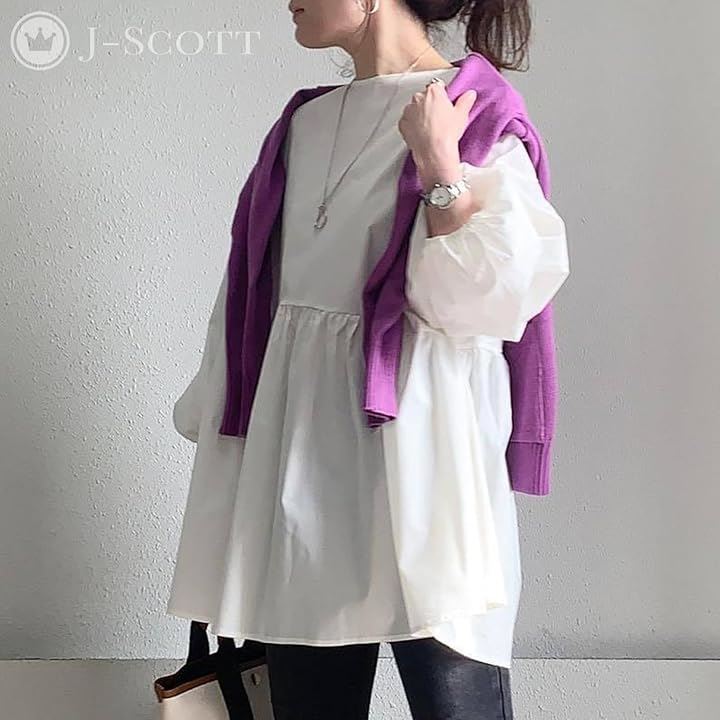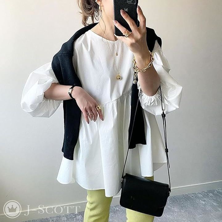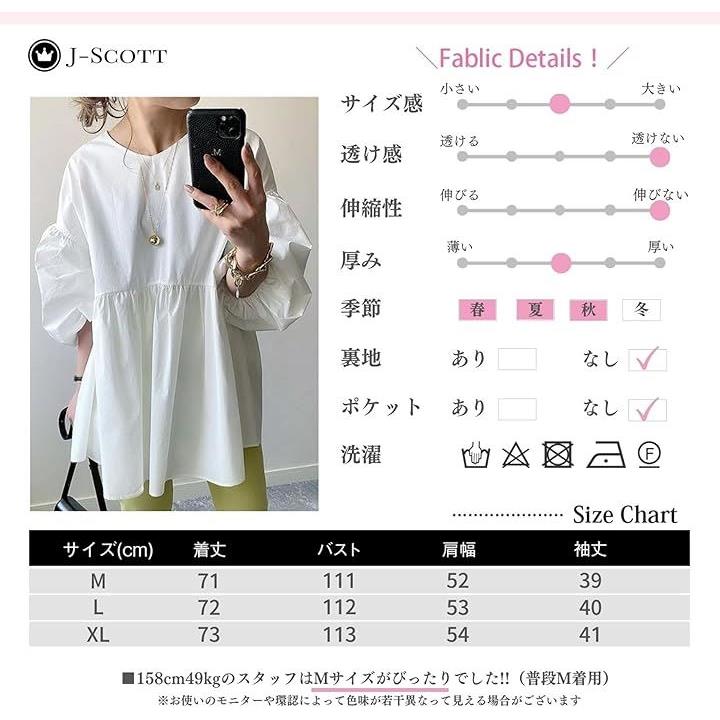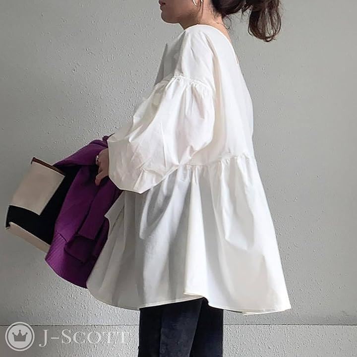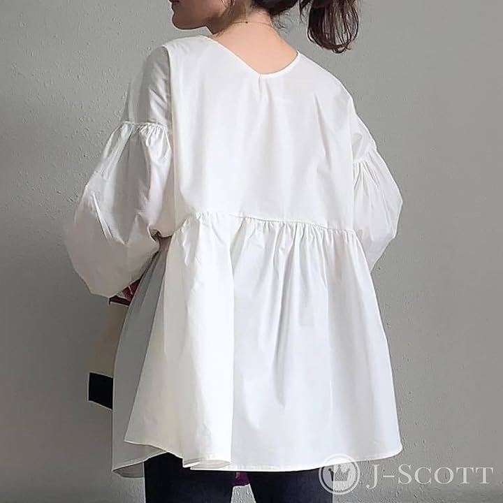 ジェイスコット ブラウス レディース チュニック ボリューム袖 パフスリーブ ペプラム 前後2way 長袖 JS134